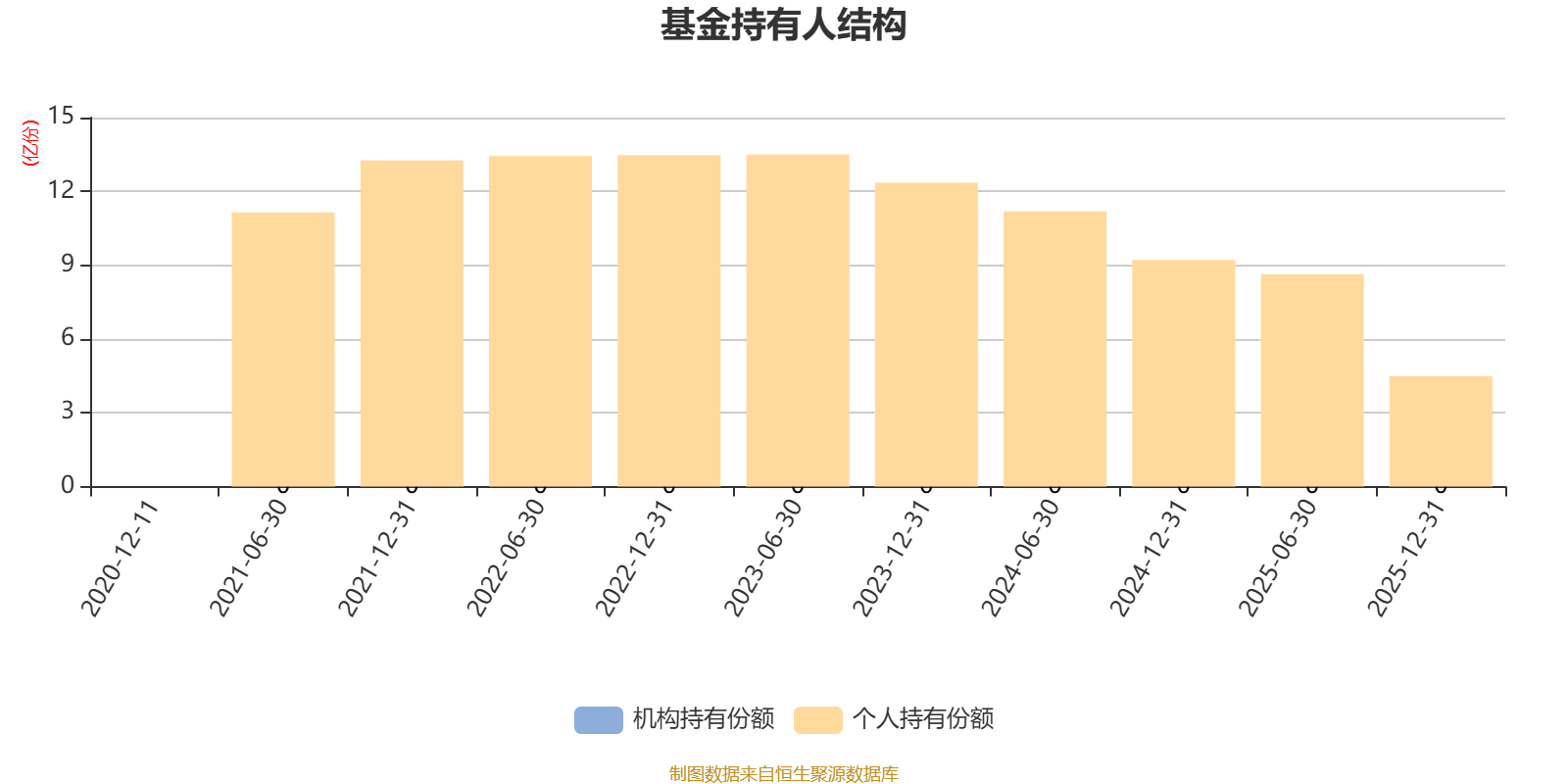 截至2025年12月31日,基金持有人共计9285户,合计持有4.49亿份。其中管理人员工持有19.51万份,占比0.04%,机构持有份额占比0.00%,个人投资者占比100.00%。