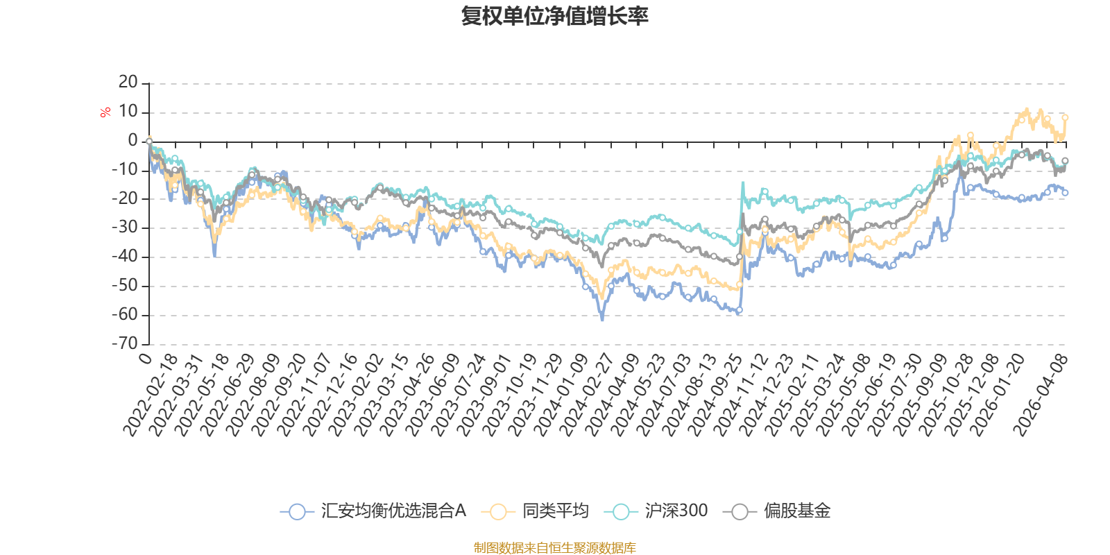 截至4月8日,汇安均衡优选混合A近三个月复权单位净值增长率为2.83%,位于同类可比基金98/229;近半年复权单位净值增长率为-3.63%,位于同类可比基金164/229;近一年复权单位净值增长率为43.61%,位于同类可比基金177/229;近三年复权单位净值增长率为7.40%,位于同类可比基金147/171。