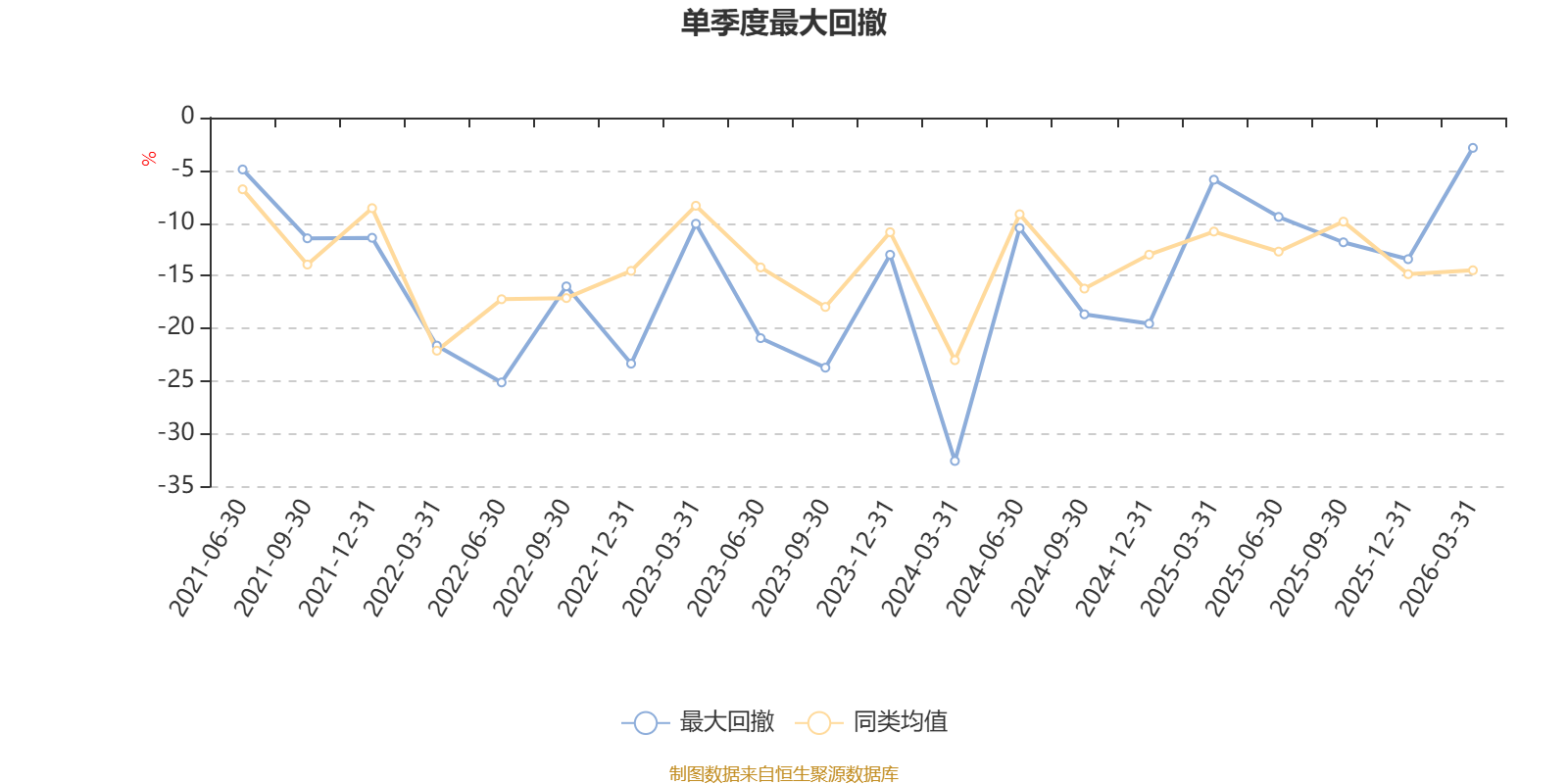 截至4月8日,基金近三年最大回撤为53.09%,同类可比基金排名157/168。单季度最大回撤出现在2024年一季度,为32.57%。