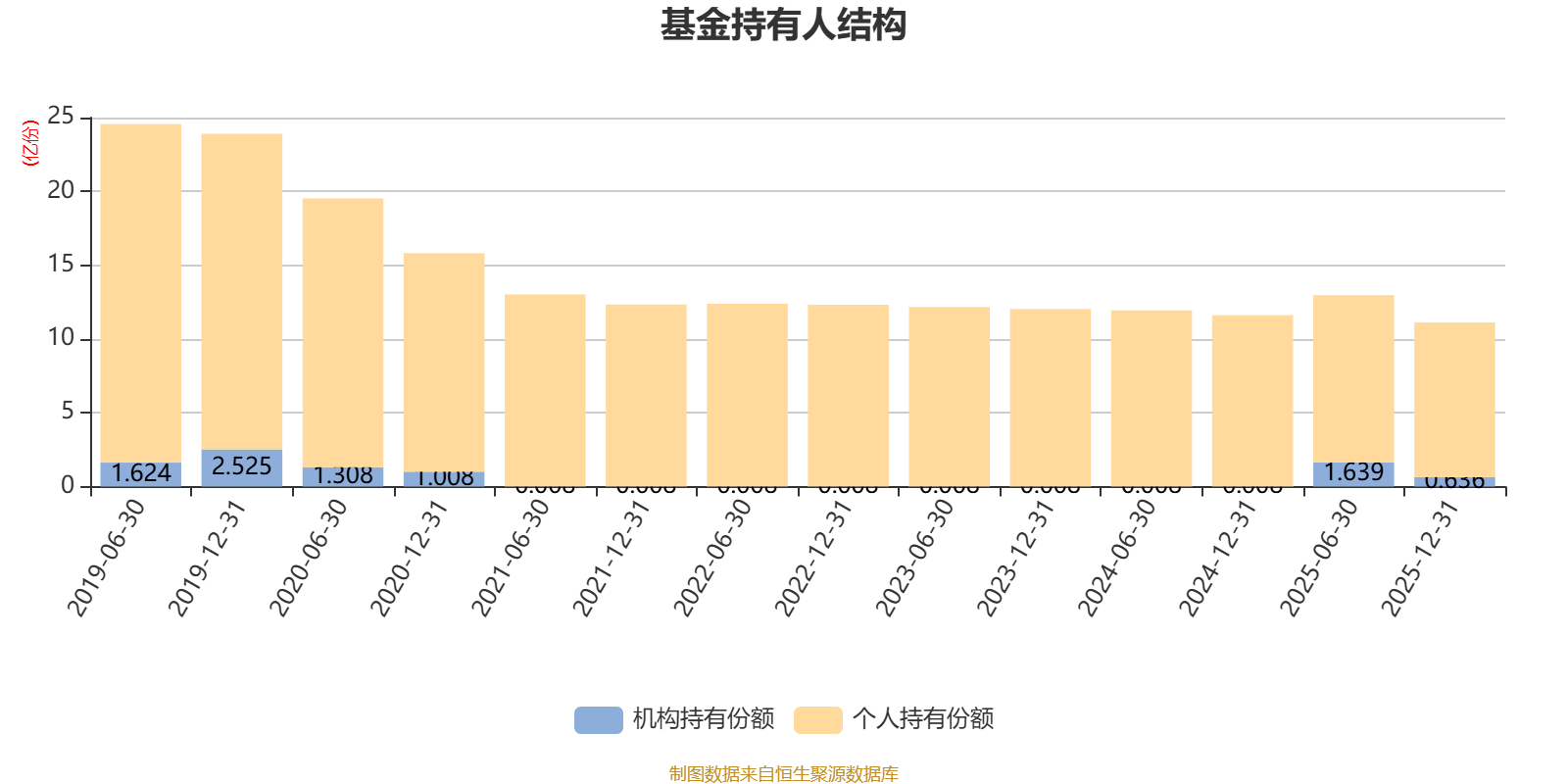 截至2025年12月31日,基金持有人共计4.41万户,合计持有11.13亿份。其中管理人员工持有1561.96份,机构持有份额占比5.72%,个人投资者占比94.28%。