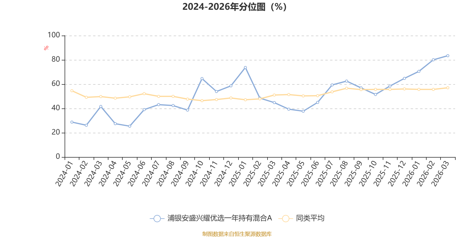 通过所选区间该基金净值增长率分位图,可以观察该基金与同类基金业绩比较情况。图为坐标原点到区间内某时点的净值增长率在同类基金中的分位数。