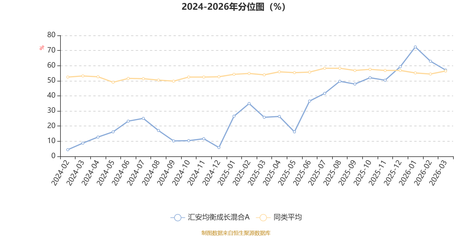 通过所选区间该基金净值增长率分位图,可以观察该基金与同类基金业绩比较情况。图为坐标原点到区间内某时点的净值增长率在同类基金中的分位数。