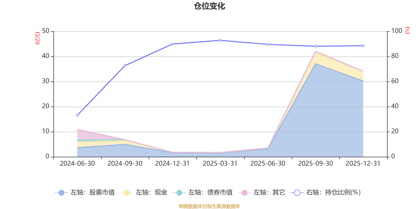 据定期报告数据统计,成立以来平均股票仓位为79.26%,同类平均为85.83%。2025年一季度末基金达到92.82%的最高仓位,2024年上半年末最低,为33.07%。