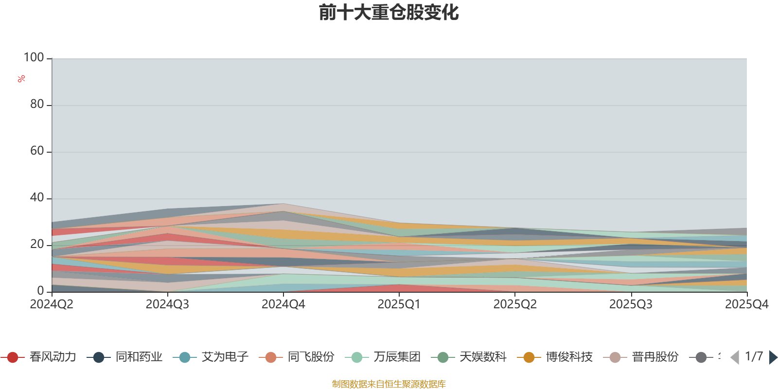 截至2025年末,基金十大重仓股分别是博腾股份、高德红外、大族数控、新强联、天娱数科、江波龙、上海家化、百济神州、生益电子、博俊科技。