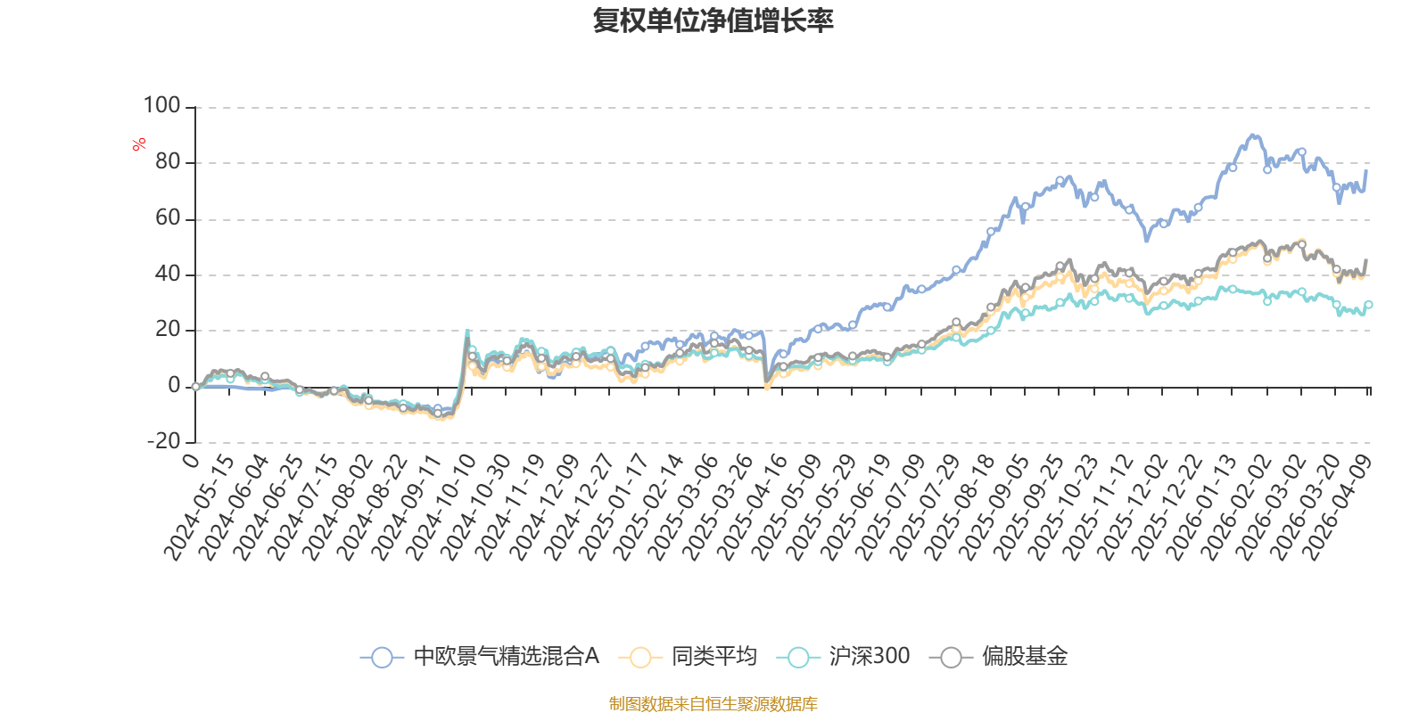 截至4月8日,中欧景气精选混合A近三个月复权单位净值增长率为0.81%,位于同类可比基金280/621;近半年复权单位净值增长率为1.71%,位于同类可比基金316/621;近一年复权单位净值增长率为70.58%,位于同类可比基金92/618。