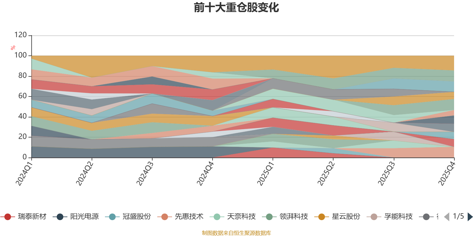 该基金持股集中度较高,近2年前十大重仓股集中度长期超过60%。截至2025年末,基金十大重仓股分别是宏工科技、厦钨新能、先惠技术、先导智能、博苑股份、微导纳米、利元亨、中一科技、英联股份、科新机电。