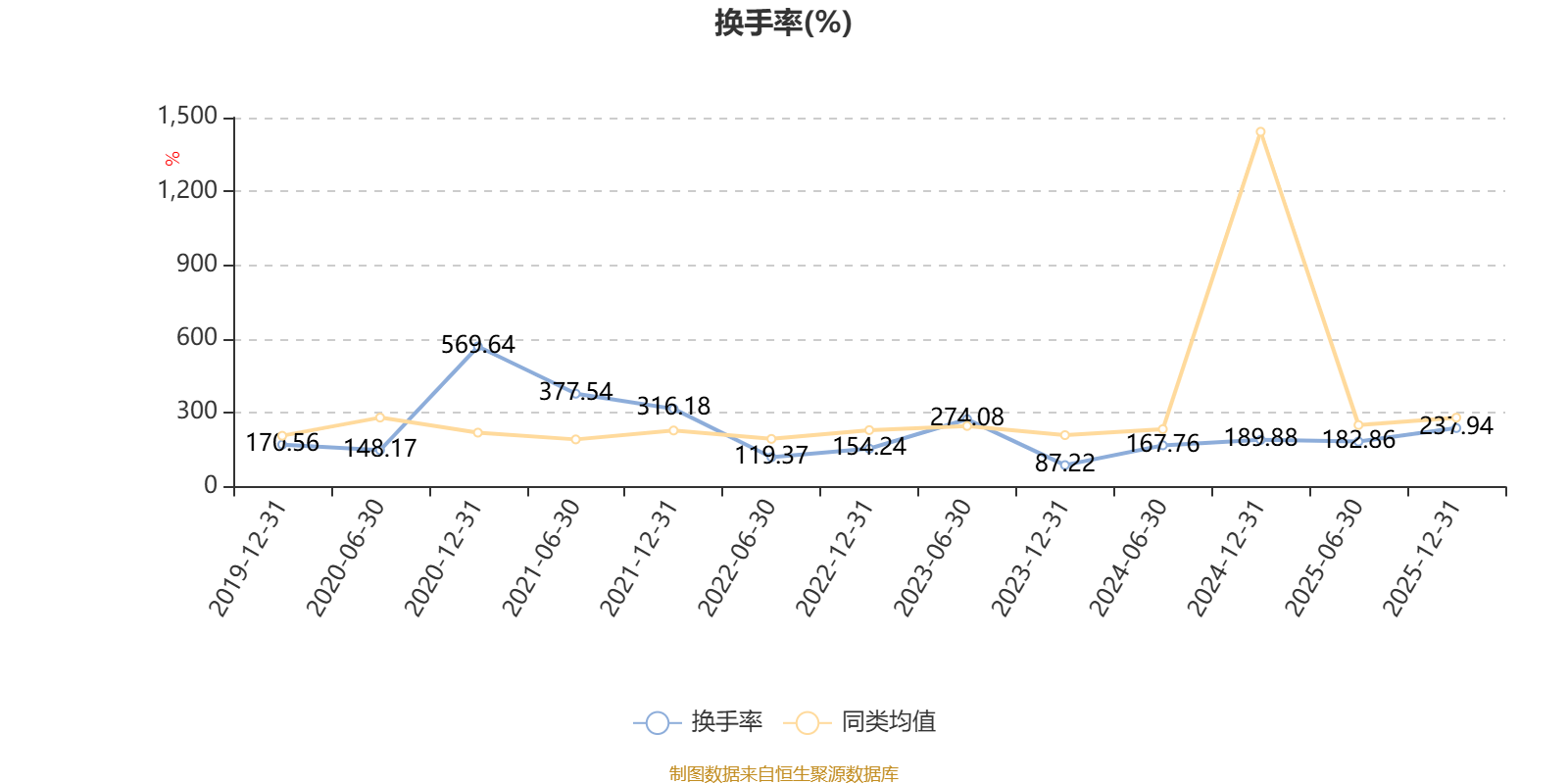 截至2025年12月31日,基金最近一年换手率约423.94%,持续2年低于同类均值。