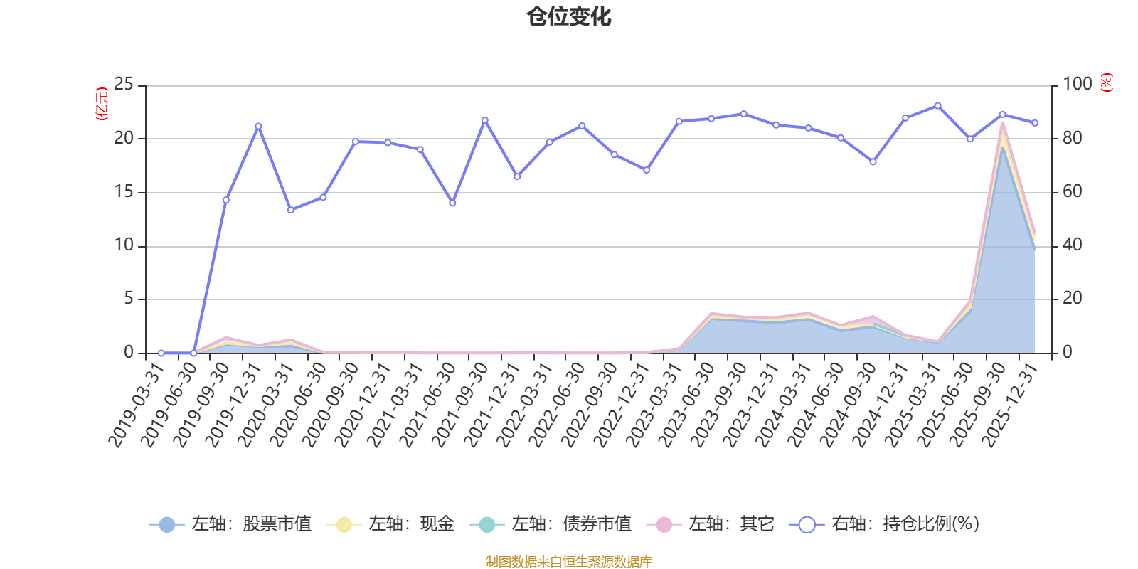 据定期报告数据统计,近三年平均股票仓位为85%,同类平均为72.57%。2025年一季度末基金达到92.41%的最高仓位,2020年一季度末最低,为53.47%。