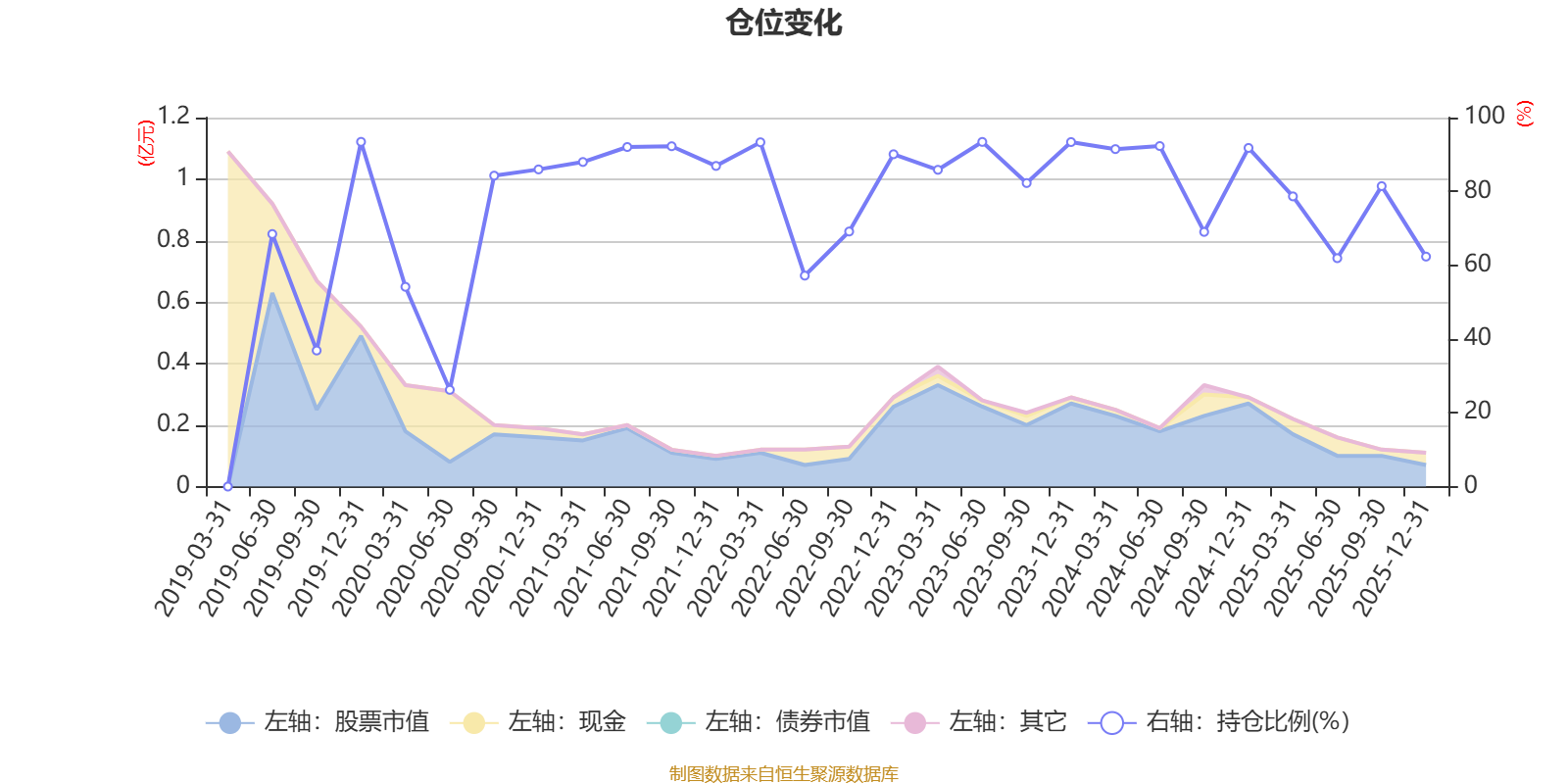 据定期报告数据统计,近三年平均股票仓位为81.98%,同类平均为72.57%。2019年末基金达到93.43%的最高仓位,2020年上半年末最低,为26.22%。