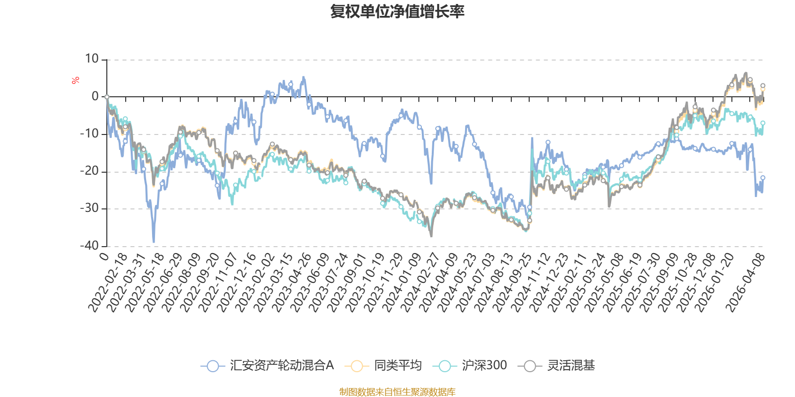 截至4月8日,汇安资产轮动混合A近三个月复权单位净值增长率为-8.35%,位于同类可比基金1189/1287;近半年复权单位净值增长率为-8.95%,位于同类可比基金1175/1286;近一年复权单位净值增长率为-1.45%,位于同类可比基金1262/1286;近三年复权单位净值增长率为-24.15%,位于同类可比基金1239/1286。