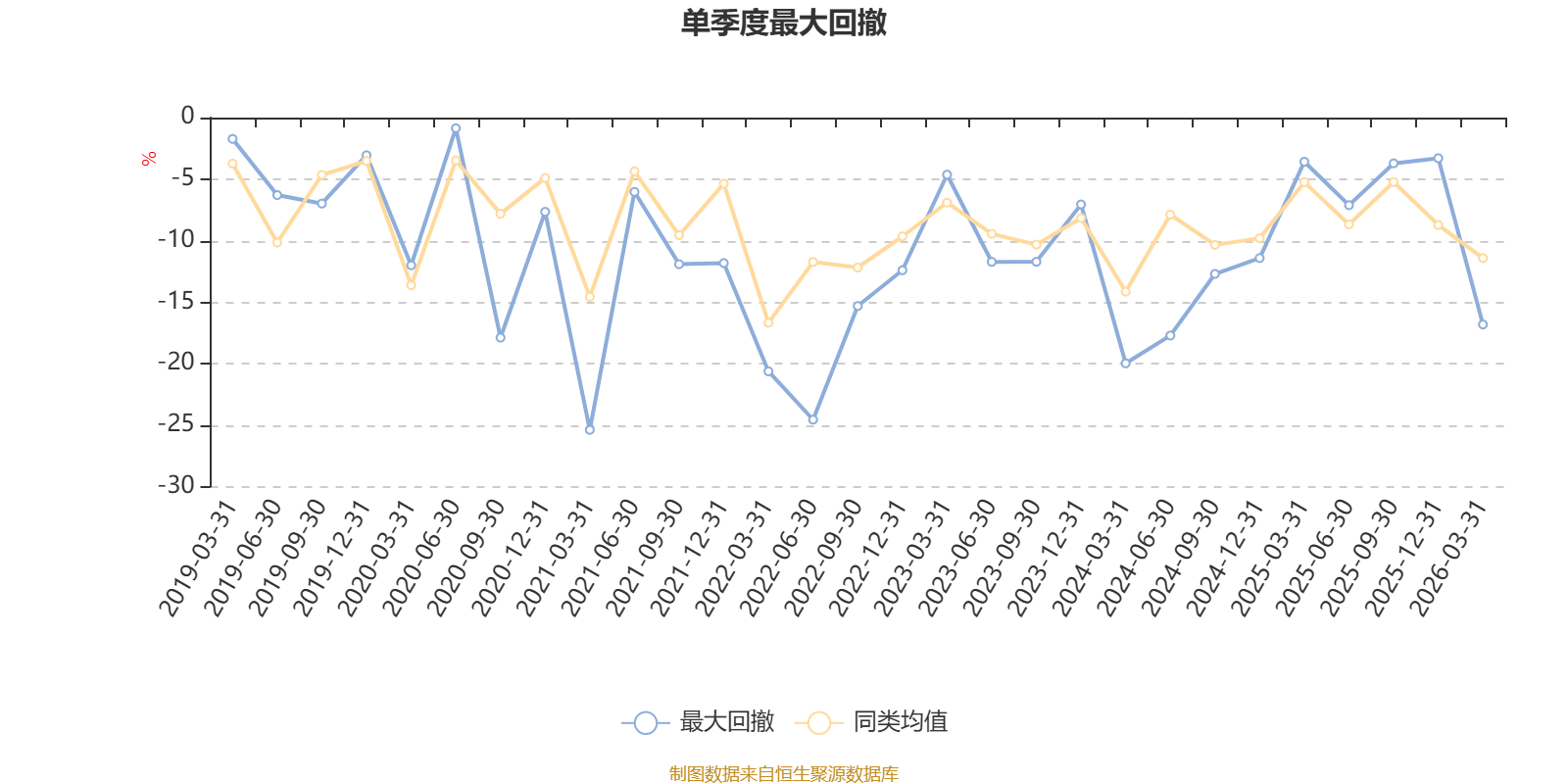 通过所选区间该基金净值增长率分位图,可以观察该基金与同类基金业绩比较情况。图为坐标原点到区间内某时点的净值增长率在同类基金中的分位数。