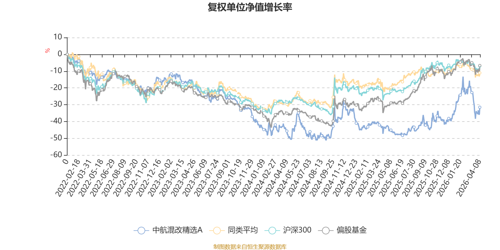 截至4月8日,中航混改精选A近三个月复权单位净值增长率为-3.53%,位于同类可比基金6/16;近半年复权单位净值增长率为17.96%,位于同类可比基金1/16;近一年复权单位净值增长率为26.49%,位于同类可比基金1/16;近三年复权单位净值增长率为-19.11%,位于同类可比基金11/12。