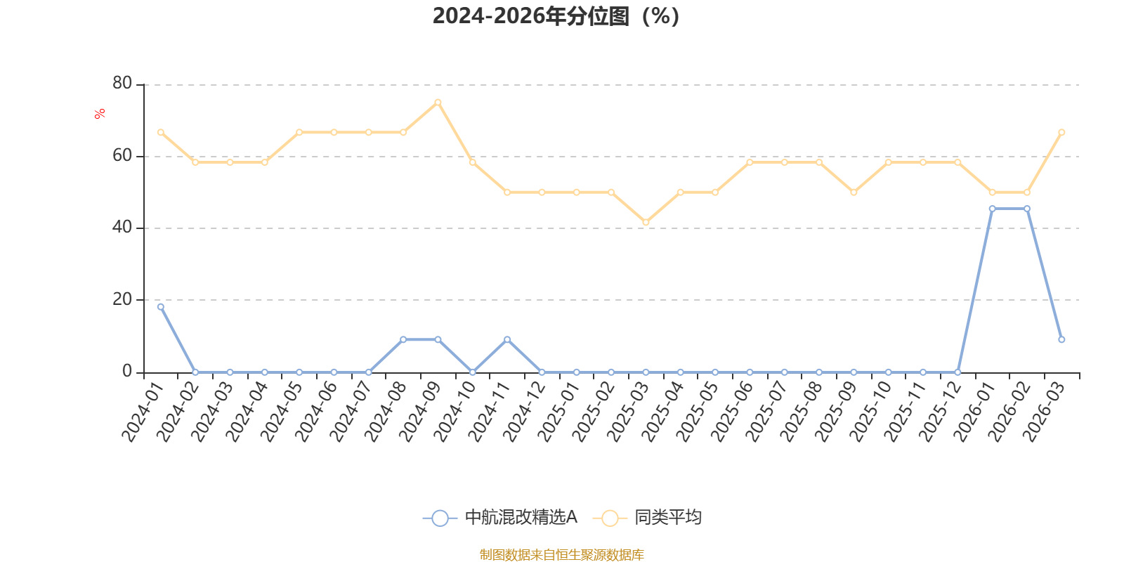 通过所选区间该基金净值增长率分位图,可以观察该基金与同类基金业绩比较情况。图为坐标原点到区间内某时点的净值增长率在同类基金中的分位数。