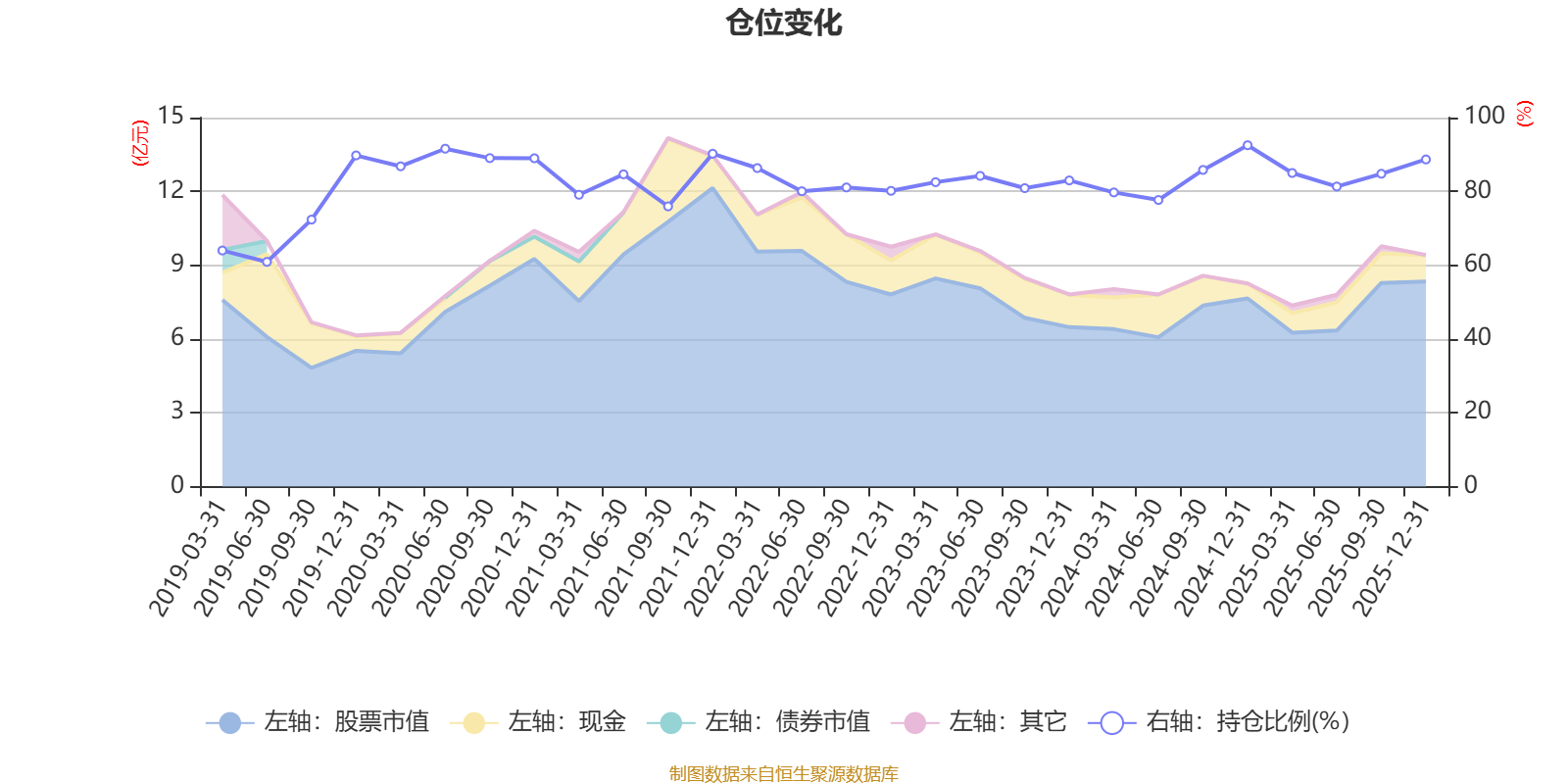 据定期报告数据统计,近三年平均股票仓位为83.84%,同类平均为72.57%。2024年末基金达到92.51%的最高仓位,2019年上半年末最低,为60.9%。