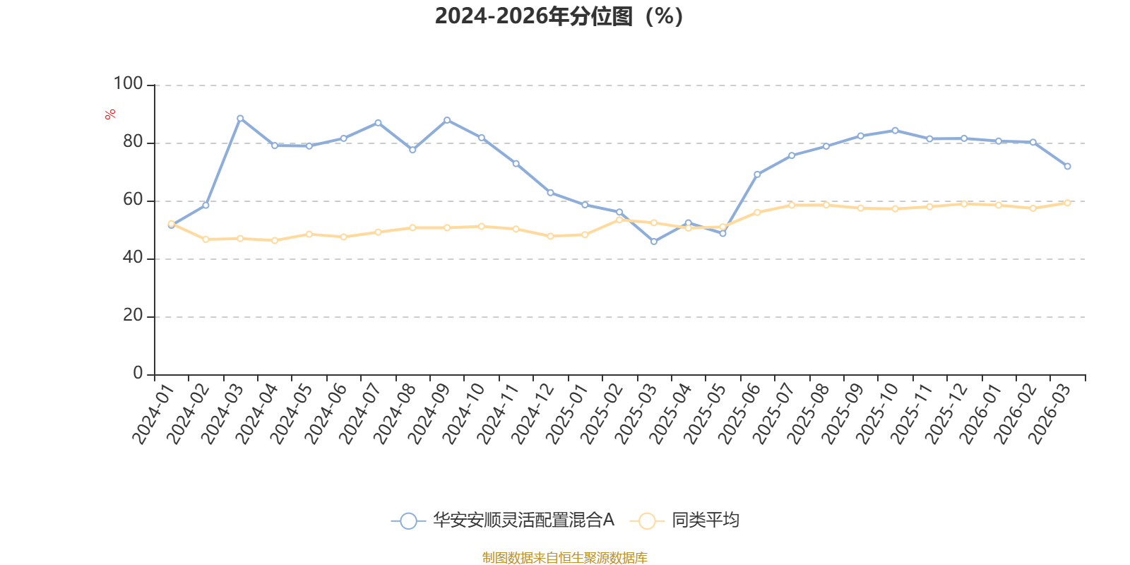 通过所选区间该基金净值增长率分位图,可以观察该基金与同类基金业绩比较情况。图为坐标原点到区间内某时点的净值增长率在同类基金中的分位数。