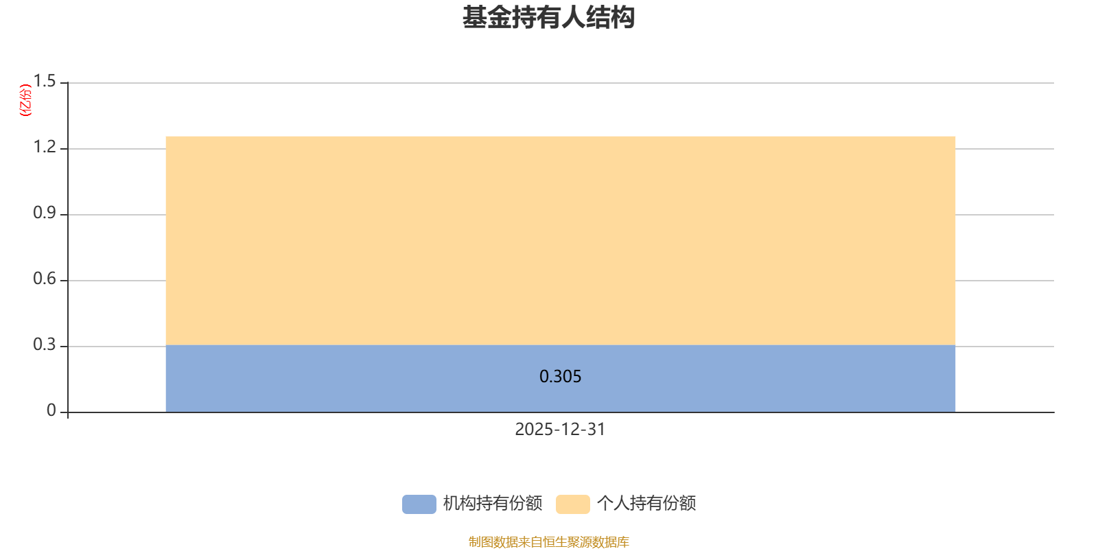 截至2025年12月31日,基金持有人共计492户,合计持有1.25亿份。其中管理人员工持有119.84万份,占比0.96%,机构持有份额占比24.35%,个人投资者占比75.65%。