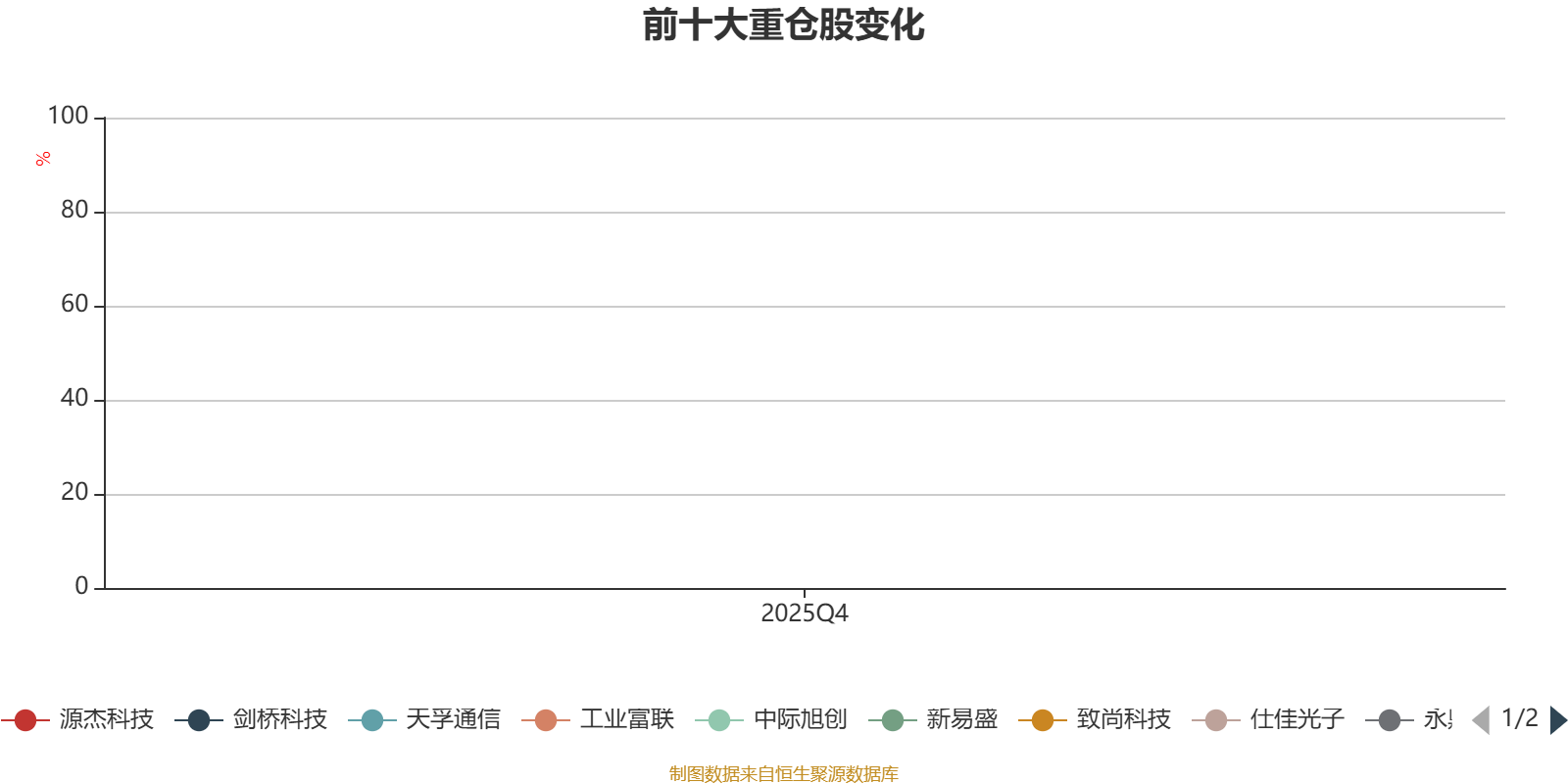 该基金持股集中度较高。截至2025年末,基金十大重仓股分别是中际旭创、新易盛、源杰科技、工业富联、永鼎股份、天孚通信、剑桥科技、长芯博创、仕佳光子、致尚科技。