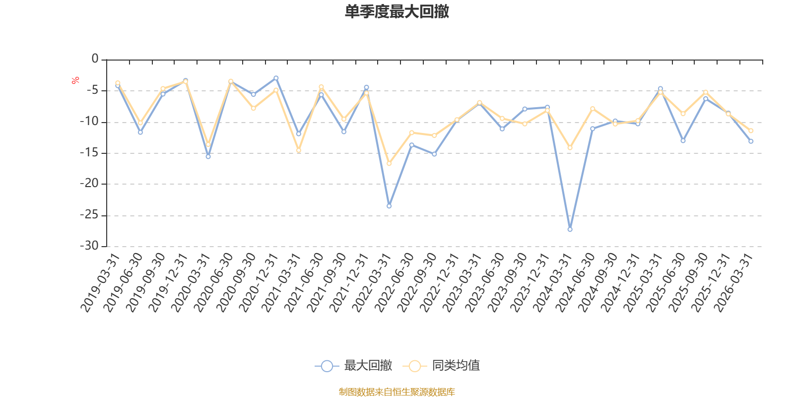 通过所选区间该基金净值增长率分位图,可以观察该基金与同类基金业绩比较情况。图为坐标原点到区间内某时点的净值增长率在同类基金中的分位数。