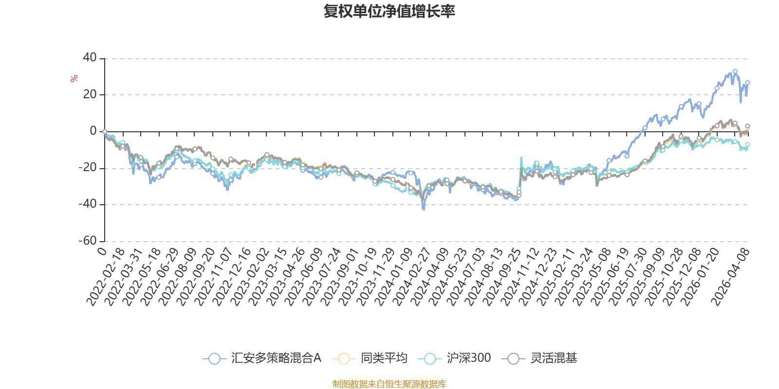 截至4月8日,汇安多策略混合A近三个月复权单位净值增长率为8.12%,位于同类可比基金124/1287;近半年复权单位净值增长率为17.82%,位于同类可比基金105/1286;近一年复权单位净值增长率为79.67%,位于同类可比基金153/1286;近三年复权单位净值增长率为51.62%,位于同类可比基金137/1286。