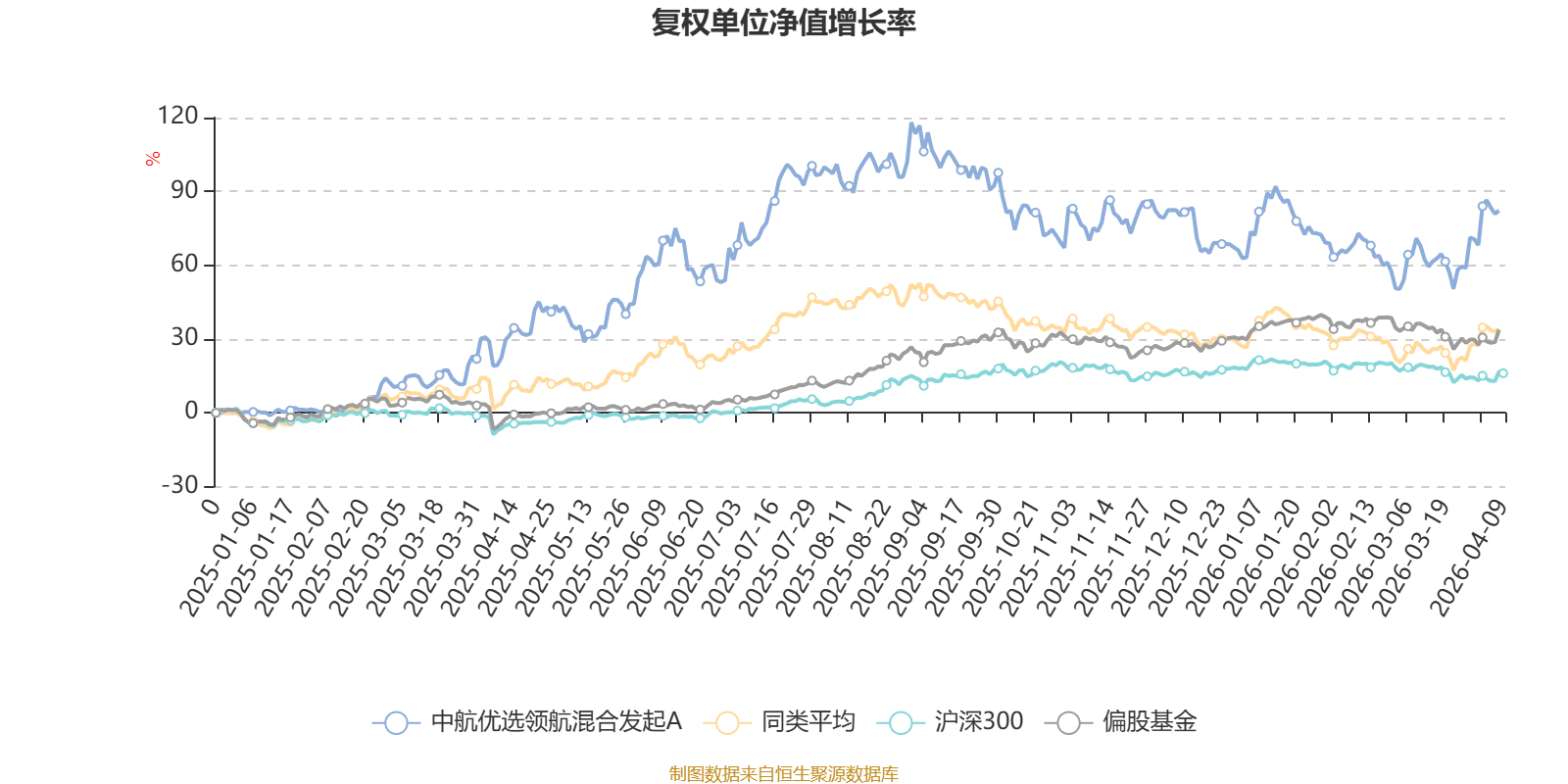 截至4月8日,中航优选领航混合发起A近三个月复权单位净值增长率为0.19%,位于同类可比基金18/106;近半年复权单位净值增长率为-7.80%,位于同类可比基金41/106;近一年复权单位净值增长率为52.59%,位于同类可比基金8/104。