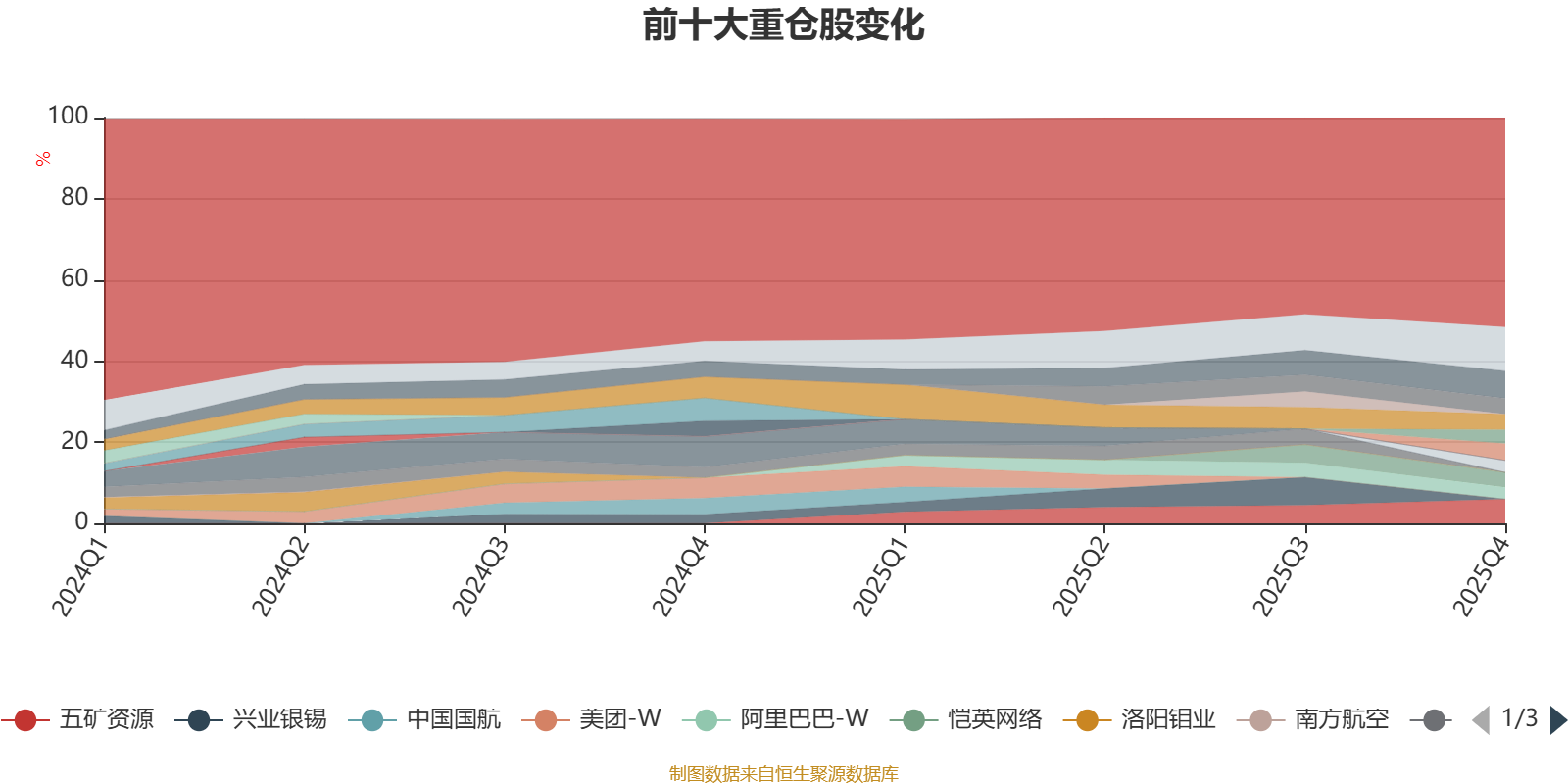 截至2025年末,基金十大重仓股分别是紫金矿业、中国铝业、五矿资源、小商品城、香港交易所、腾讯控股、恺英网络、太阳纸业、汇丰控股、阿里巴巴-W。