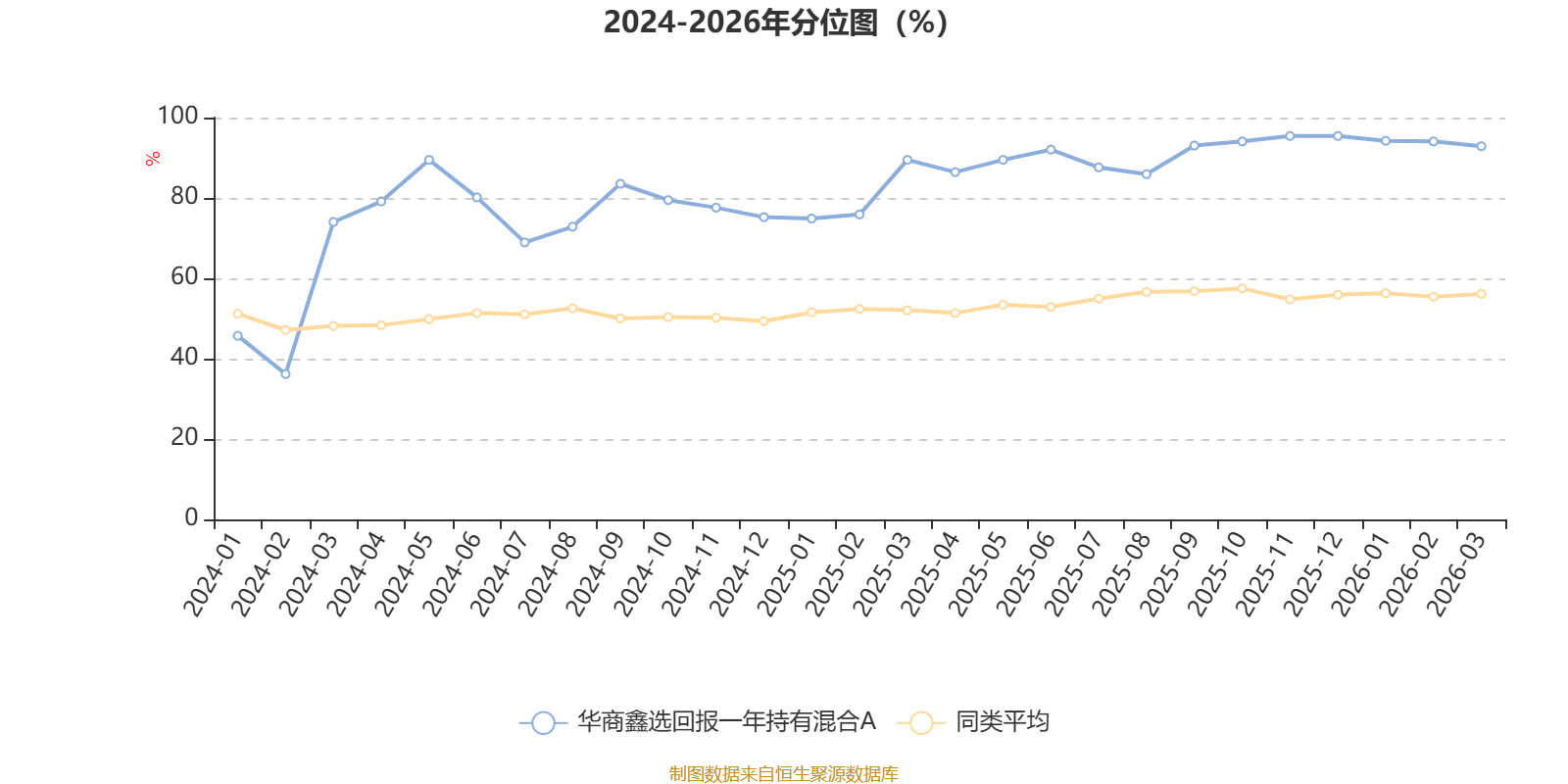 通过所选区间该基金净值增长率分位图,可以观察该基金与同类基金业绩比较情况。图为坐标原点到区间内某时点的净值增长率在同类基金中的分位数。