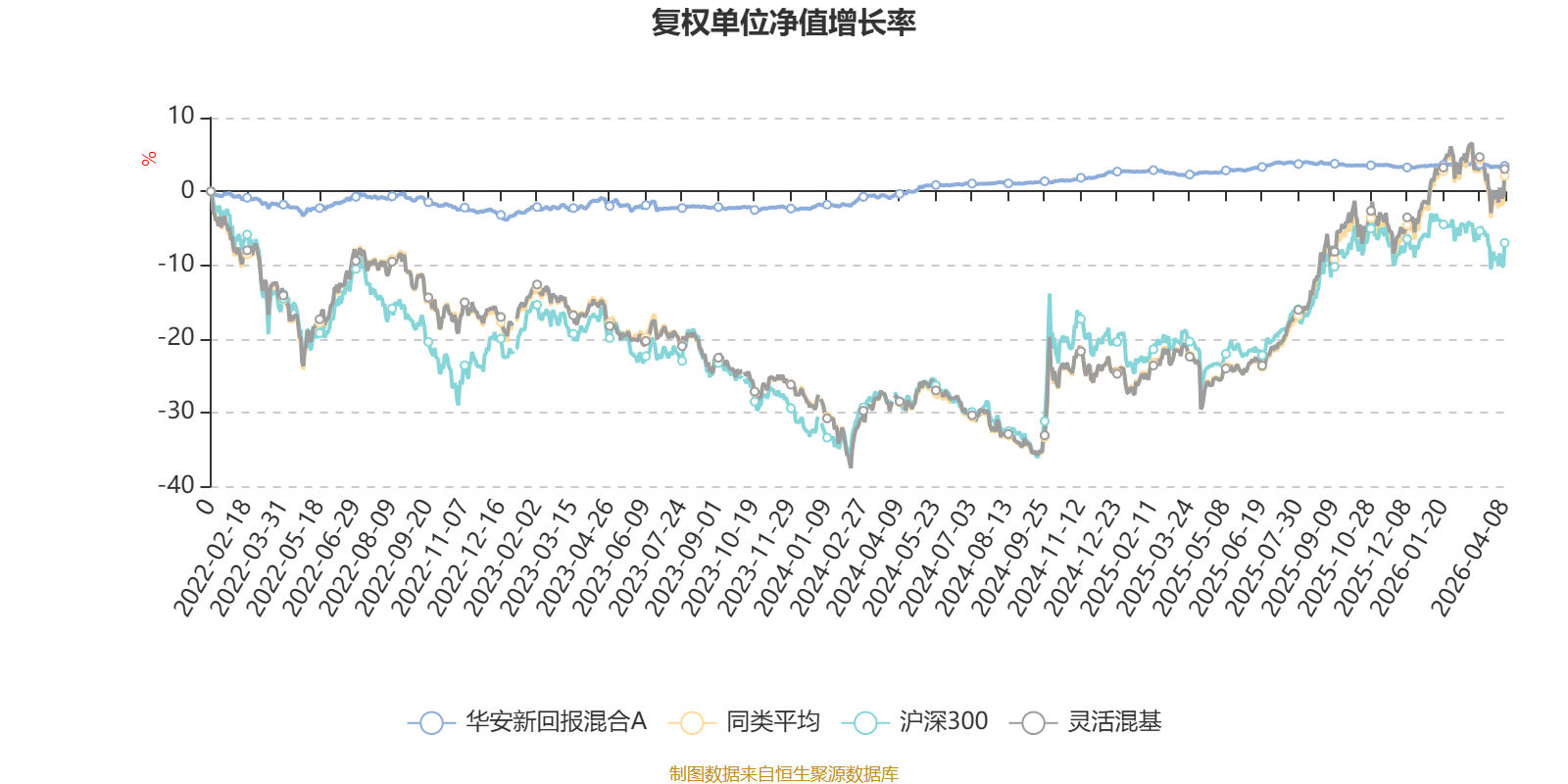 截至4月8日,华安新回报混合A近三个月复权单位净值增长率为-0.03%,位于同类可比基金677/1287;近半年复权单位净值增长率为-0.06%,位于同类可比基金874/1286;近一年复权单位净值增长率为0.88%,位于同类可比基金1255/1286;近三年复权单位净值增长率为4.70%,位于同类可比基金859/1286。