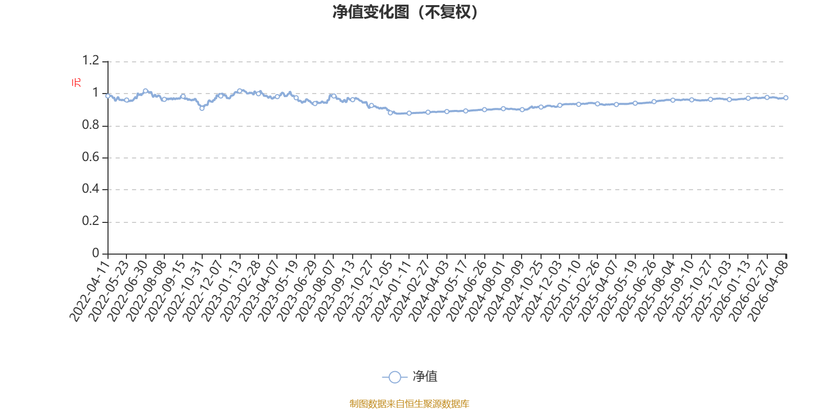 该基金属于灵活配置型基金。截至4月8日,单位净值为0.973元。基金经理是金鸿峰,目前管理10只基金。其中,截至4月8日,汇安嘉盈一年持有期债券A近一年复权单位净值增长率最高,达4.75%;汇安稳裕债券A最低,为-6.89%。