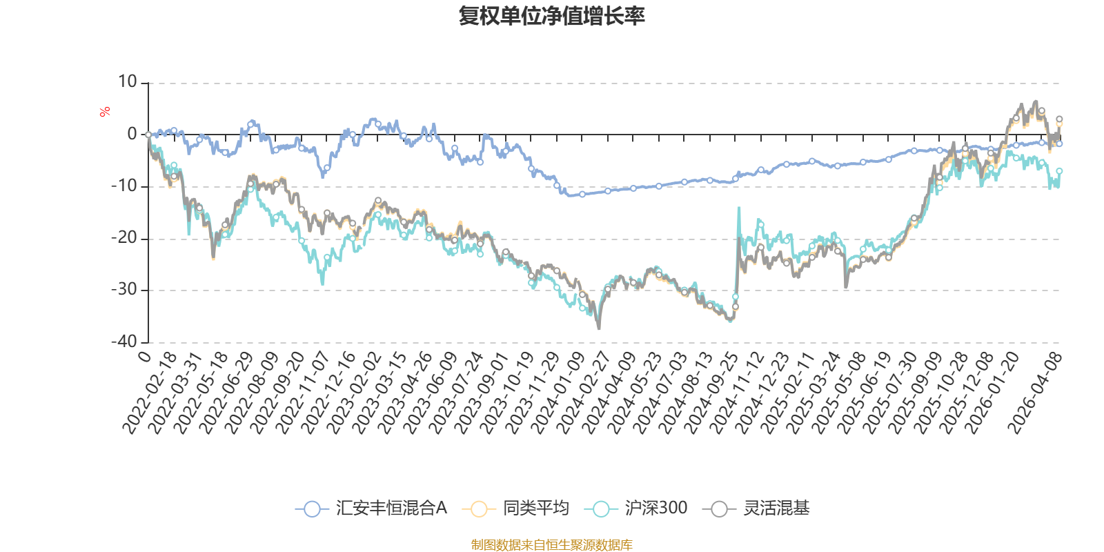 截至4月8日,汇安丰恒混合A近三个月复权单位净值增长率为0.62%,位于同类可比基金568/1287;近半年复权单位净值增长率为1.78%,位于同类可比基金713/1286;近一年复权单位净值增长率为4.32%,位于同类可比基金1201/1286;近三年复权单位净值增长率为-0.71%,位于同类可比基金982/1286。