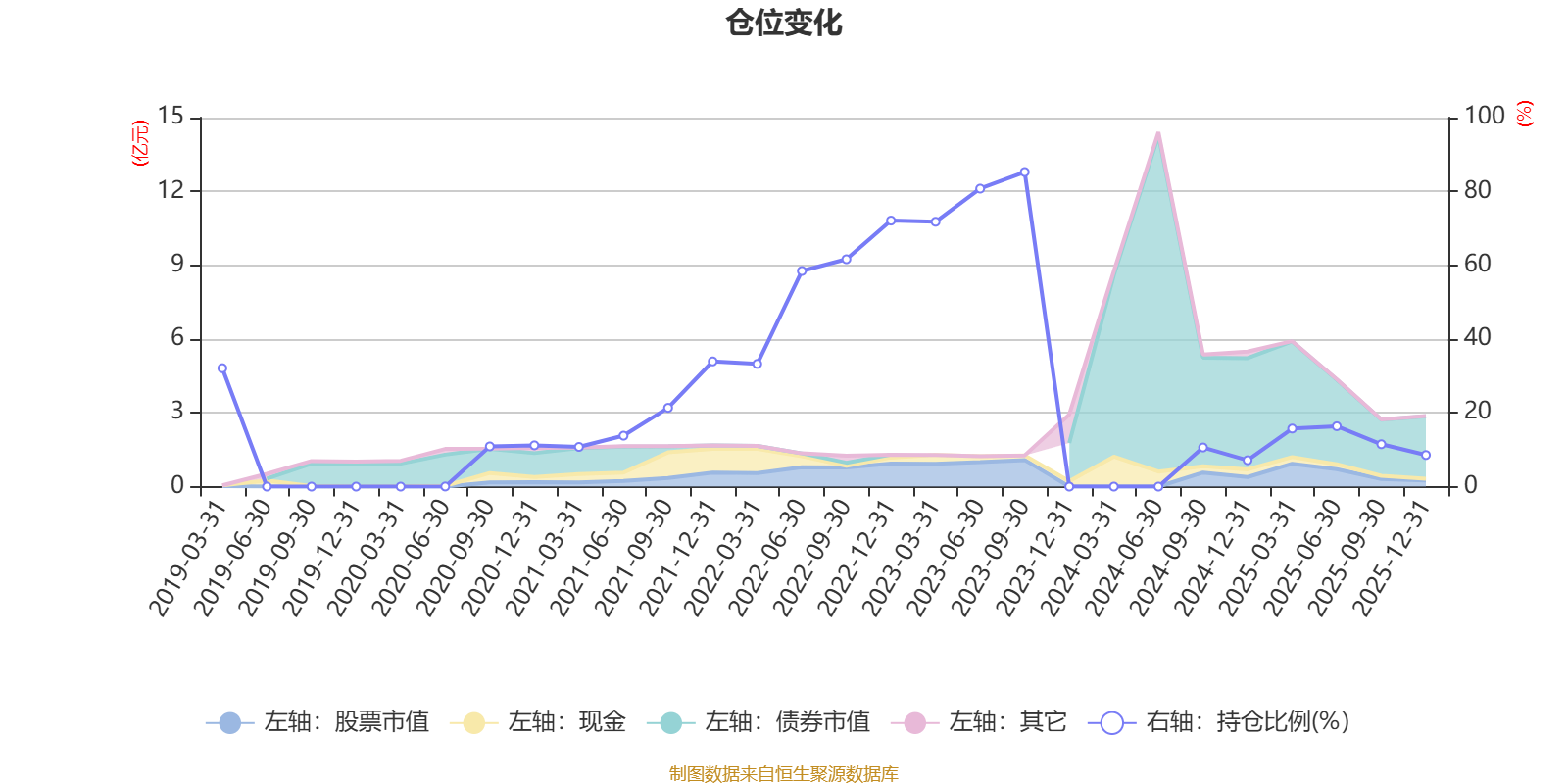 基金管理人在年报中表示,2026年的债市大概率继续维持震荡行情,但通胀抬升的背景下,需要关注利率中枢是否会阶段性抬升。另外股市行情引发的股债比价波动,也会引发债市呈现区间波动。不过GDP回升程度或相对有限,地产投资和销售现状短期内较难出现实质转变,社会融资在当前经济水平下也很难有较强起色。货币政策大概率继续延续偏松态势。债市出现较大风险的概率相对可控。低利率的环境中,要重视票息对组合的收益贡献,一方面要抓住配置时间点,紧盯每次阶段性调整的窗口期进行布局。交易盘要注重把握数据、信息、政策预期差,但交易速度和节奏较难把握,切忌恋战。权益仓位继续跟踪两大指数,整体比例低于20%。
