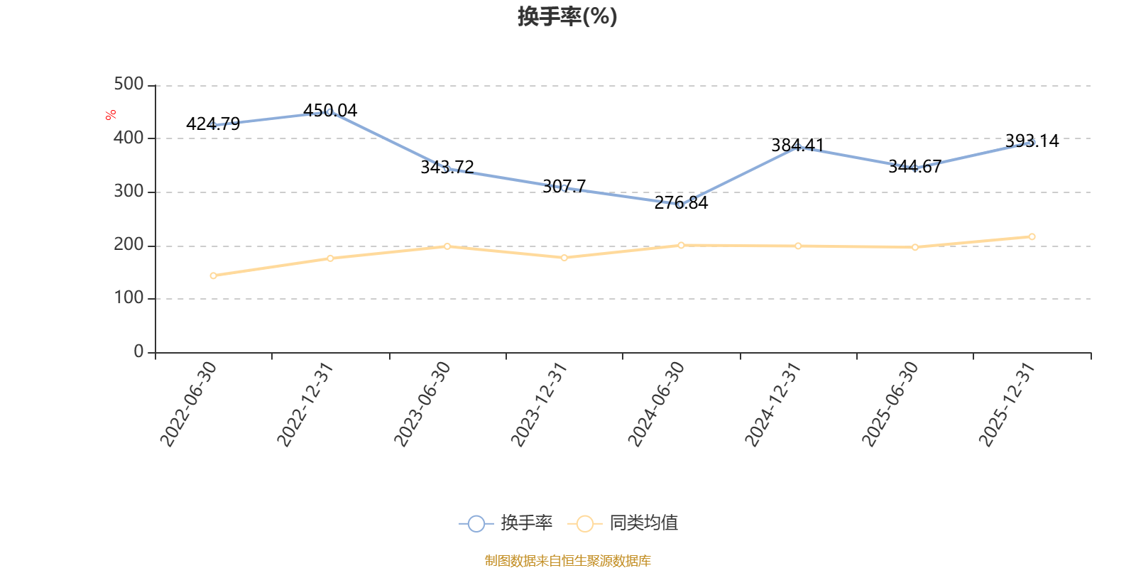 截至2025年12月31日,基金最近一年换手率约715.01%,持续高于同类均值。