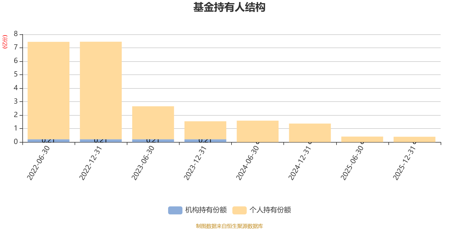 截至2025年12月31日,基金持有人共计746户,合计持有3986.37万份。其中管理人员工持有1份,机构持有份额占比0.00%,个人投资者占比100.00%。