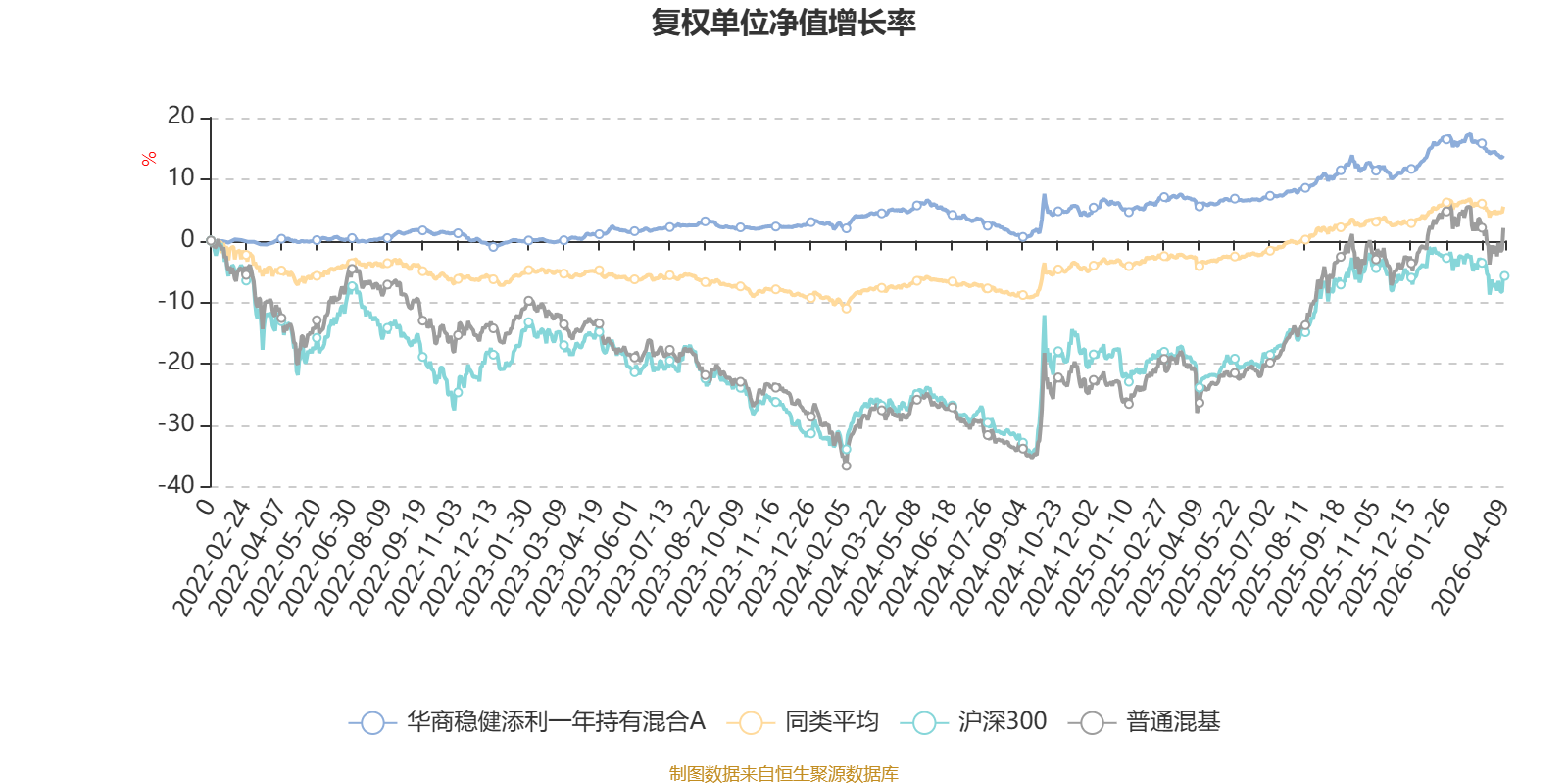 截至4月8日,华商稳健添利一年持有混合A近三个月复权单位净值增长率为-1.07%,位于同类可比基金550/629;近半年复权单位净值增长率为0.50%,位于同类可比基金443/629;近一年复权单位净值增长率为8.10%,位于同类可比基金283/629;近三年复权单位净值增长率为12.72%,位于同类可比基金221/581。