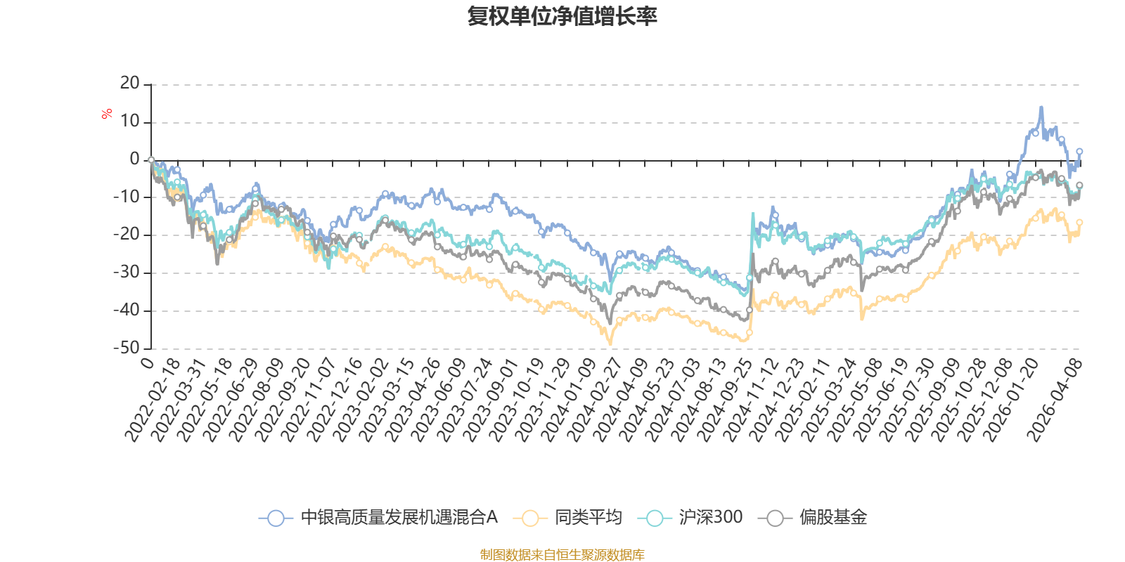 截至4月8日,中银高质量发展机遇混合A近三个月复权单位净值增长率为-3.01%,位于同类可比基金479/689;近半年复权单位净值增长率为6.36%,位于同类可比基金248/689;近一年复权单位净值增长率为39.41%,位于同类可比基金341/685;近三年复权单位净值增长率为12.56%,位于同类可比基金207/417。