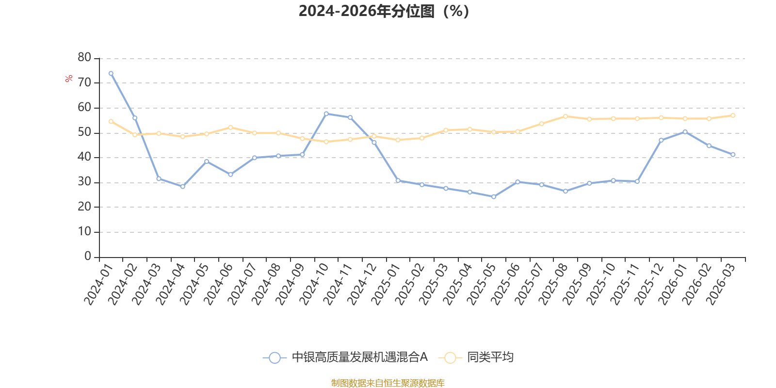 通过所选区间该基金净值增长率分位图,可以观察该基金与同类基金业绩比较情况。图为坐标原点到区间内某时点的净值增长率在同类基金中的分位数。