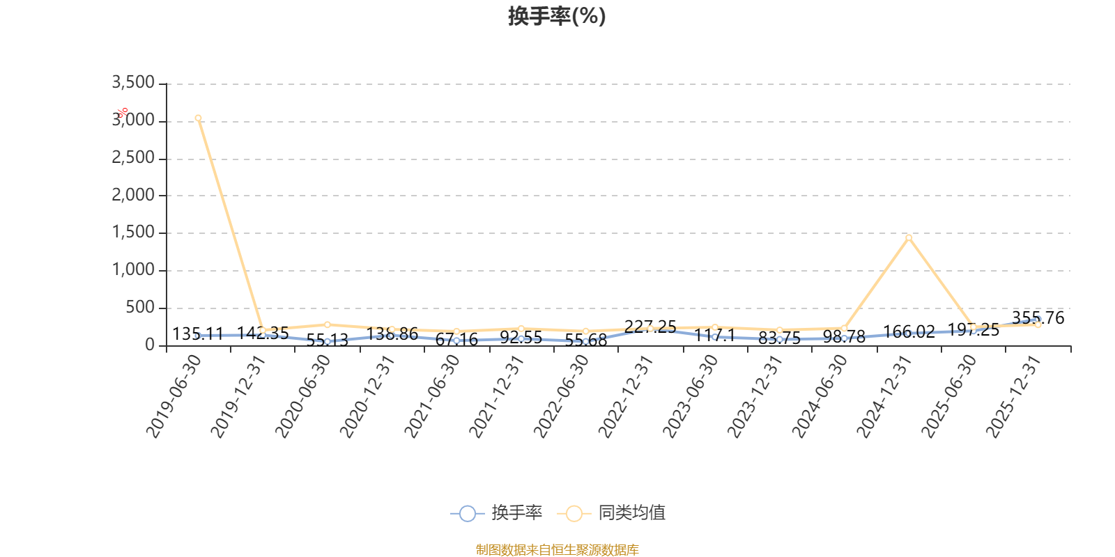 截至2025年12月31日,基金最近一年换手率约564.37%。