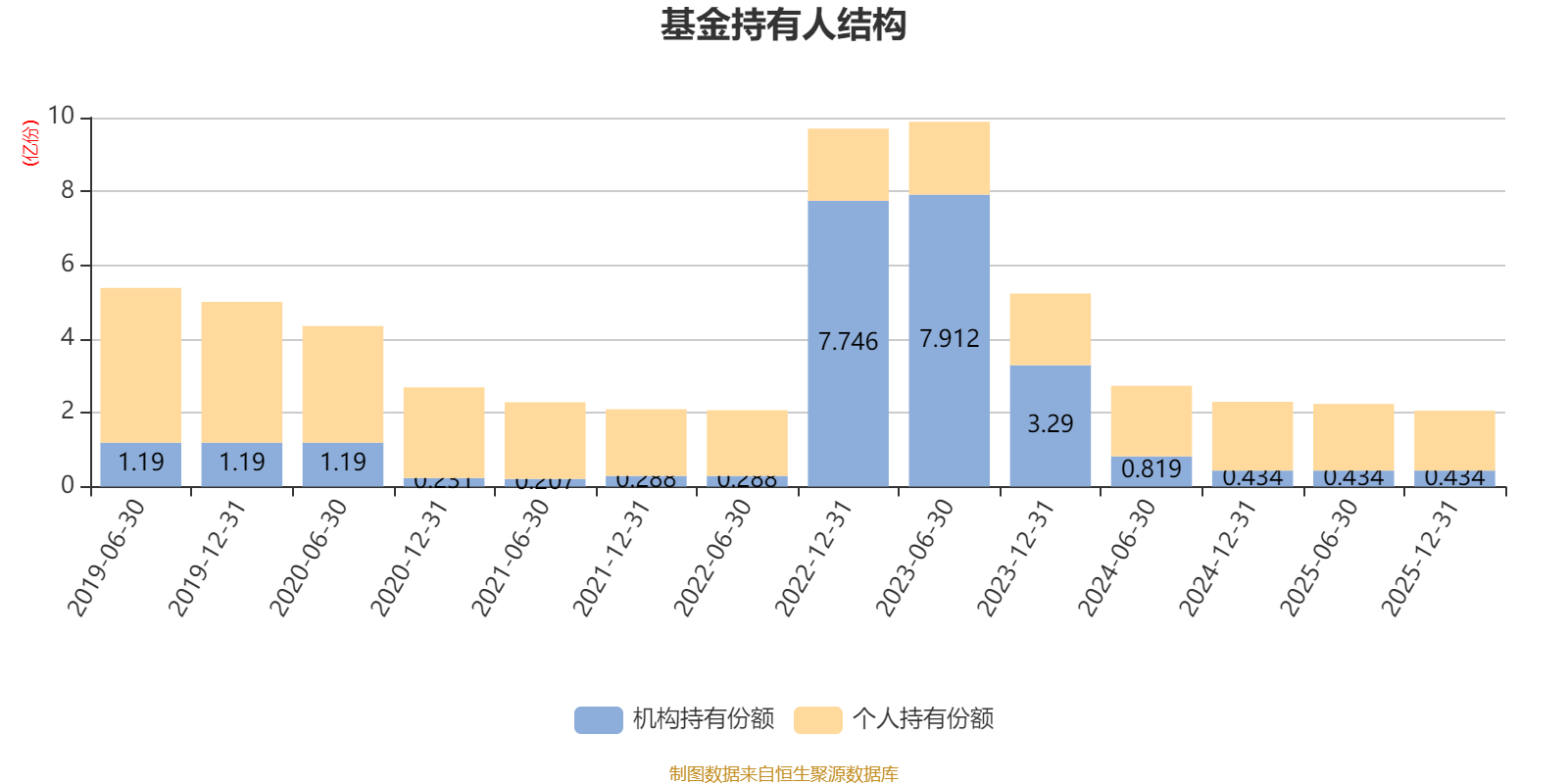 截至2025年12月31日,基金持有人共计1.05万户,合计持有2.06亿份。其中管理人员工持有1.1万份,占比0.01%,机构持有份额占比21.11%,个人投资者占比78.89%。