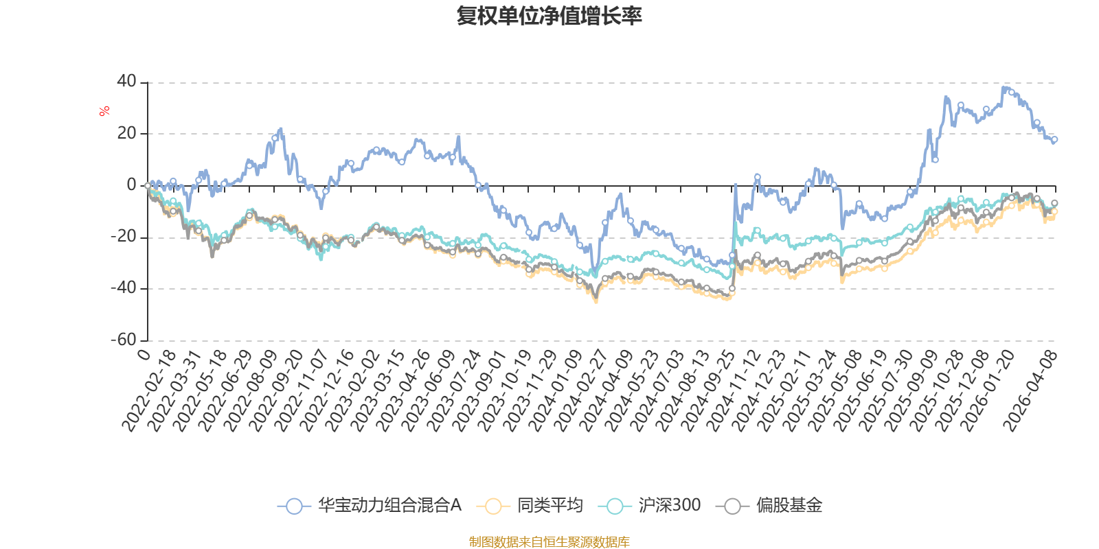 截至4月8日,华宝动力组合混合A近三个月复权单位净值增长率为-13.02%,位于同类可比基金183/185;近半年复权单位净值增长率为-11.54%,位于同类可比基金175/185;近一年复权单位净值增长率为42.25%,位于同类可比基金84/185;近三年复权单位净值增长率为-0.07%,位于同类可比基金139/177。