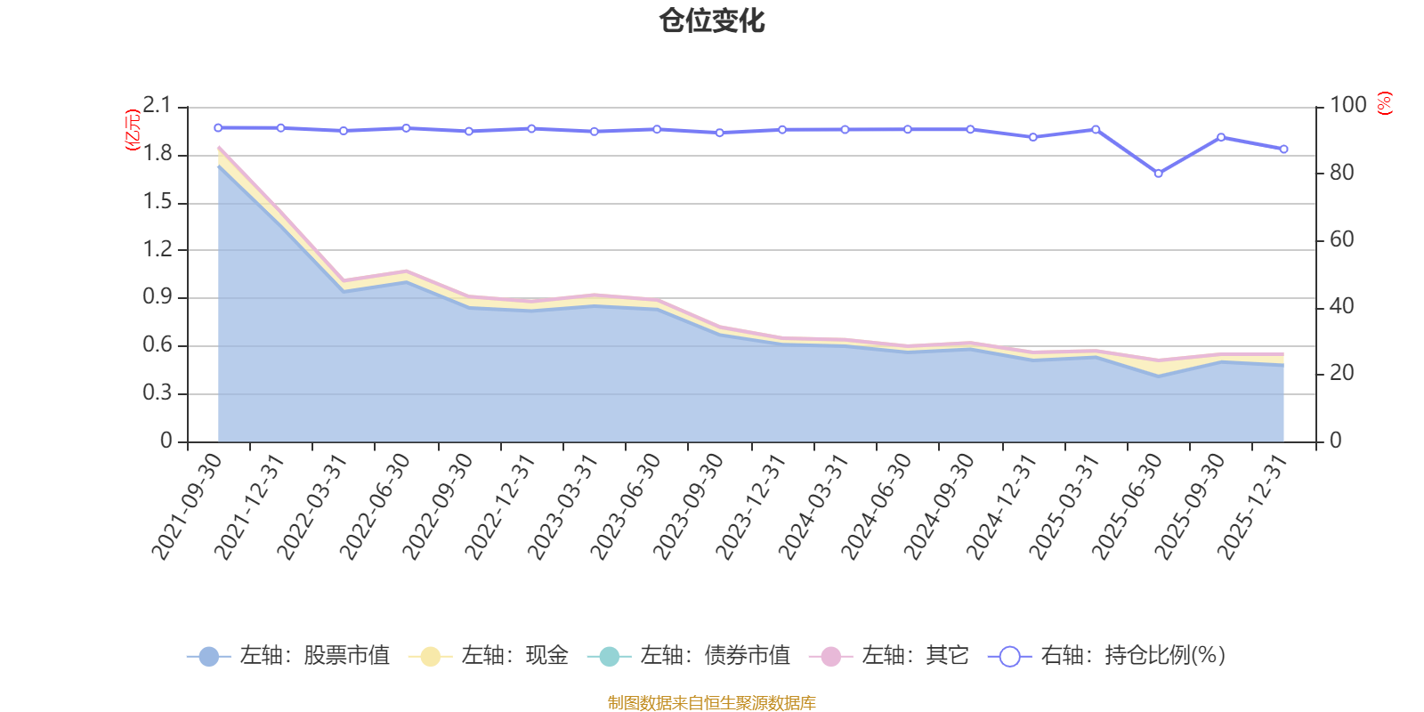 据定期报告数据统计,近三年平均股票仓位为91.15%,同类平均为84.04%。2021年三季度末基金达到93.73%的最高仓位,2025年上半年末最低,为80.12%。