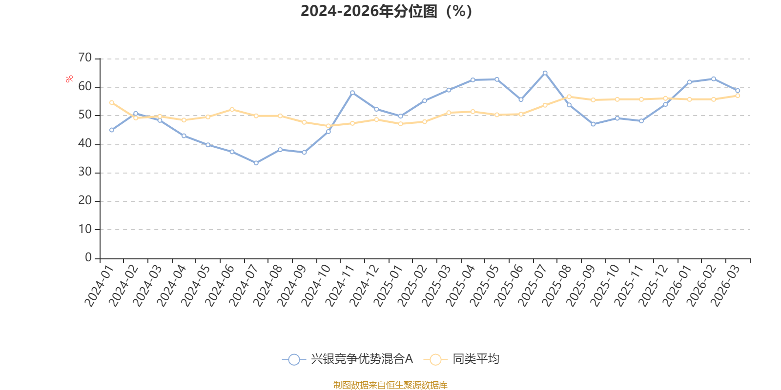 通过所选区间该基金净值增长率分位图,可以观察该基金与同类基金业绩比较情况。图为坐标原点到区间内某时点的净值增长率在同类基金中的分位数。