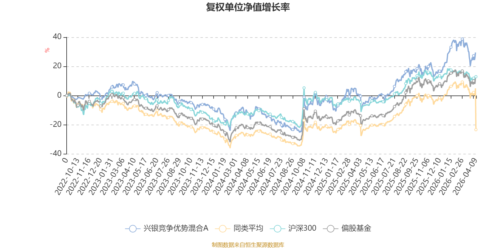 截至4月8日,兴银竞争优势混合A近三个月复权单位净值增长率为0.18%,位于同类可比基金330/689;近半年复权单位净值增长率为7.63%,位于同类可比基金223/689;近一年复权单位净值增长率为43.13%,位于同类可比基金311/685;近三年复权单位净值增长率为18.46%,位于同类可比基金174/417。