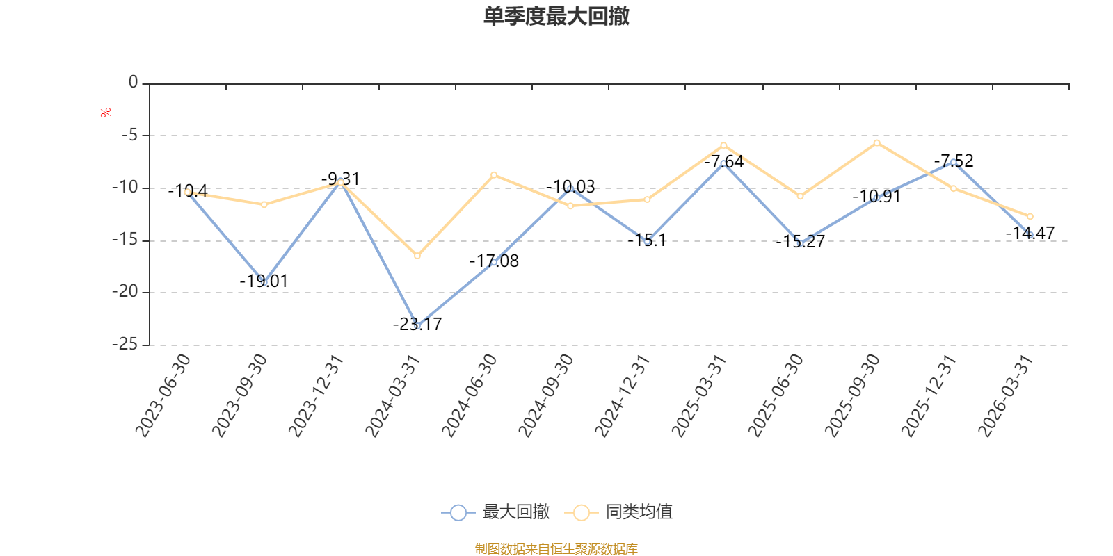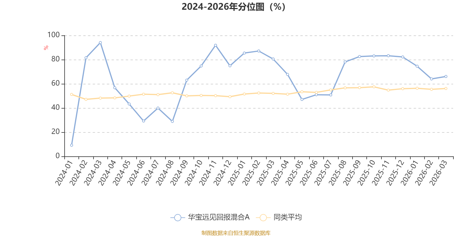 通过所选区间该基金净值增长率分位图,可以观察该基金与同类基金业绩比较情况。图为坐标原点到区间内某时点的净值增长率在同类基金中的分位数。