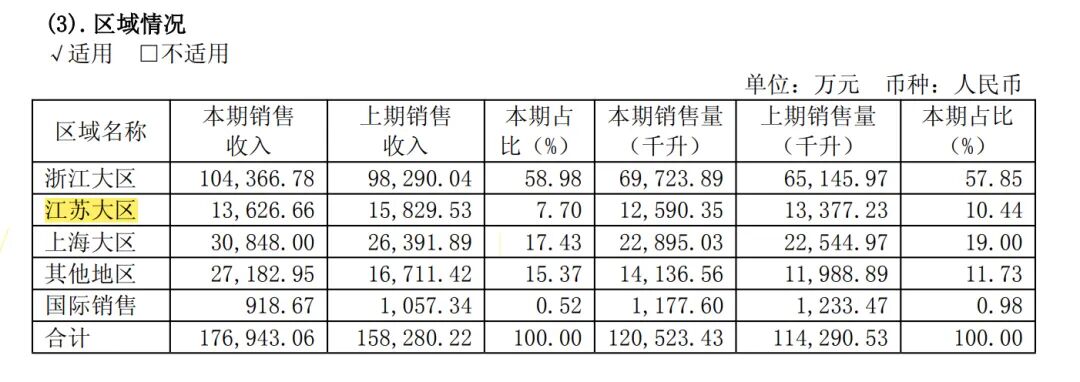 对此,唐桂江在业绩会上表示,江苏市场波动主要源于公司主动渠道优化、清理低效产品与经销商,新一轮策略已落地,发货常态化后表现将明显改善,重回增长轨道。