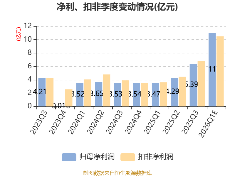中证智能财讯巨人网络(002558)4月10日晚间披露业绩预告,预计2026年一季度归母净利润10亿元至12亿元,同比增长187.47%-244.96%;扣非净利润预计9.5亿元至11.5亿元,同比增长162.19%-217.38%;基本每股收益0.53元/股-0.63元/股。以最新收盘价计算,市净率(LF)约4.33倍,市销率(TTM)约16.13倍。