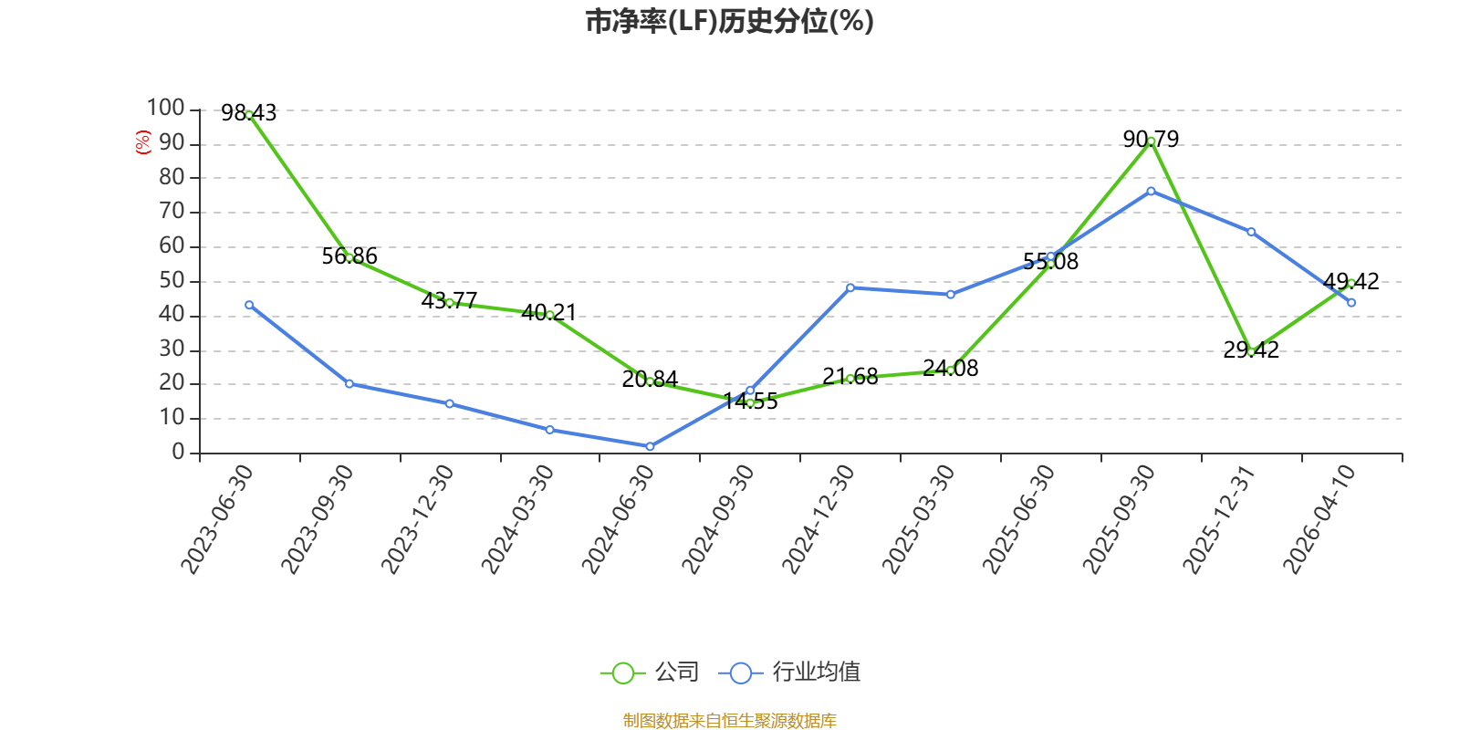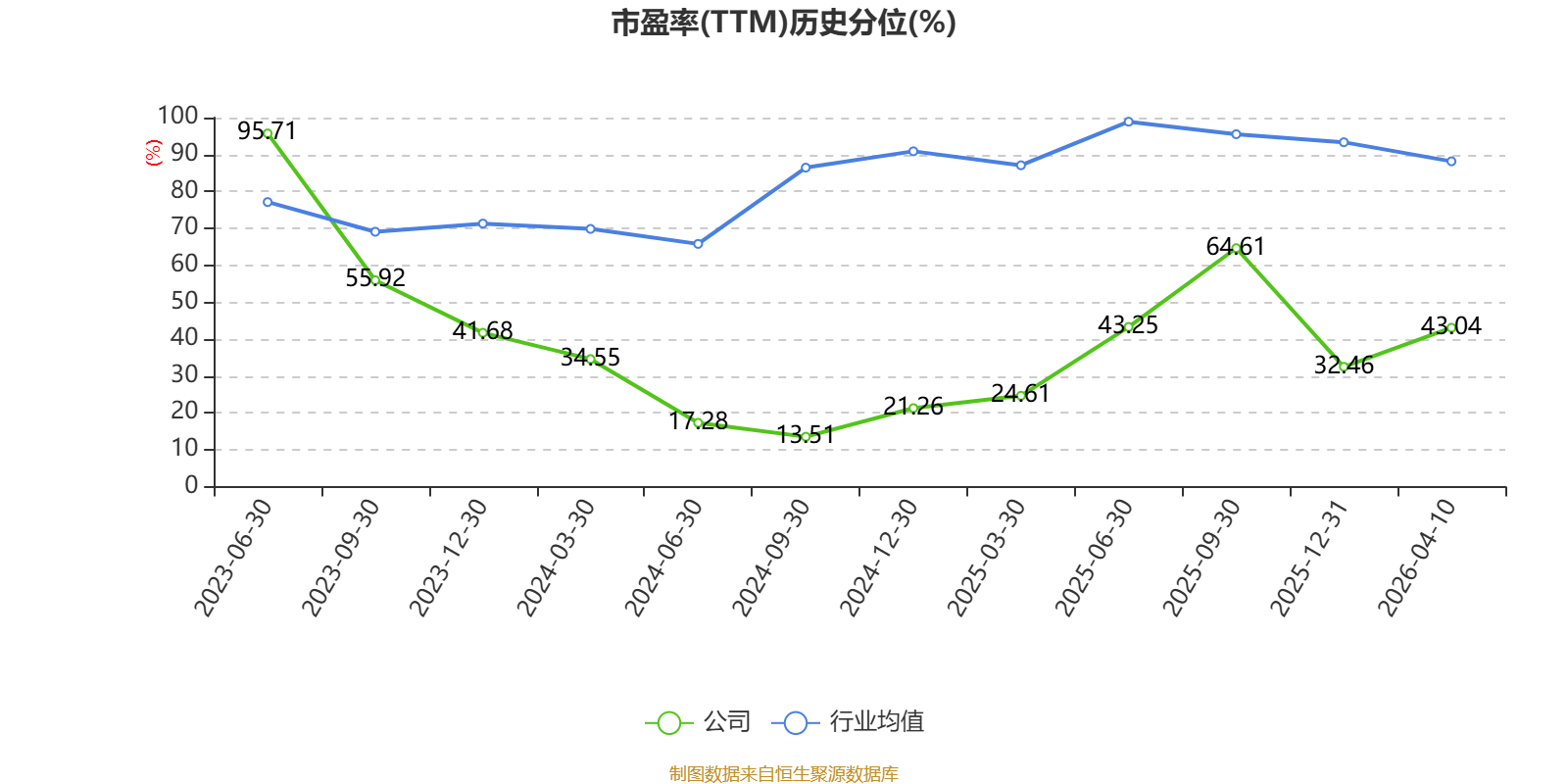 市盈率、市净率为负时,不显示当期分位数,会导致折线图中断。