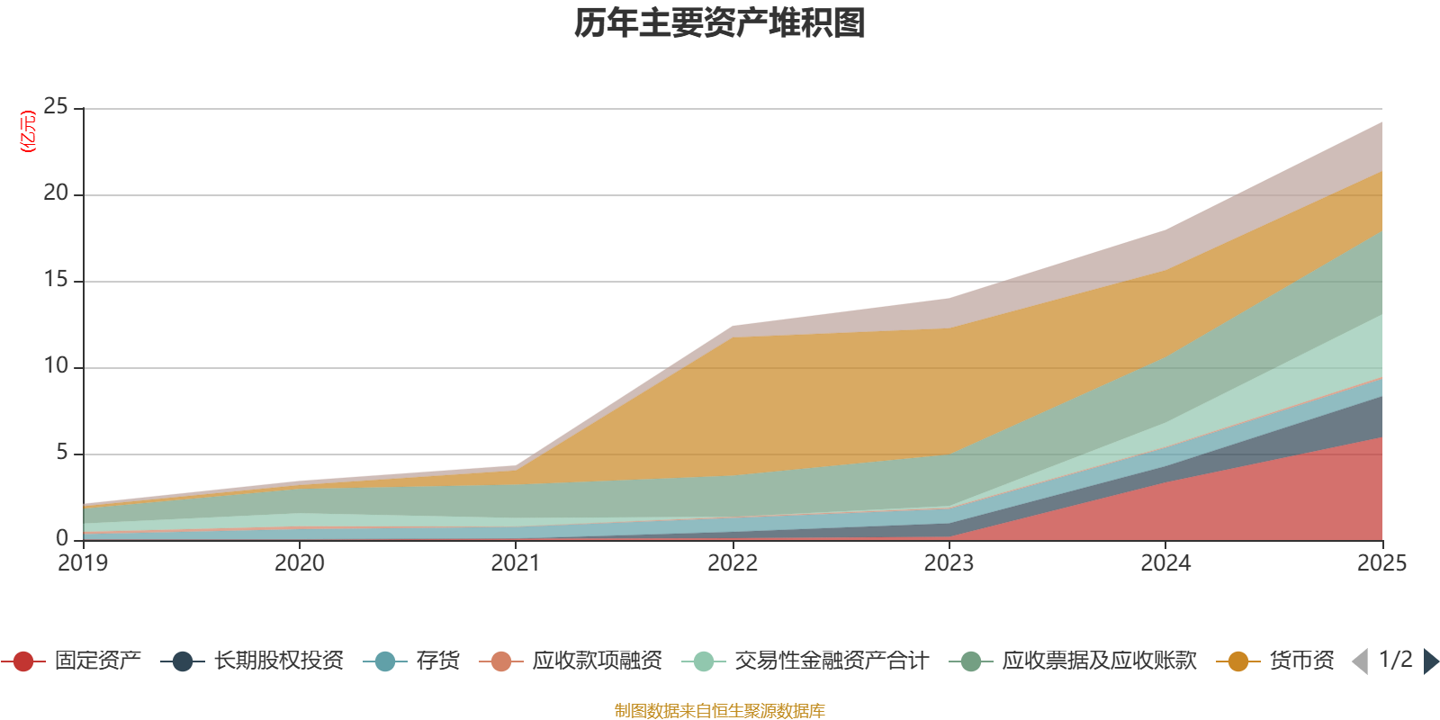 资产重大变化方面,截至2025年末,公司货币资金较上年末减少31.16%,占公司总资产比重下降13.7个百分点;交易性金融资产合计较上年末增加158.05%,占公司总资产比重上升7.15个百分点;固定资产较上年末增加78.29%,占公司总资产比重上升5.99个百分点;长期股权投资较上年末增加153.72%,占公司总资产比重上升4.6个百分点。