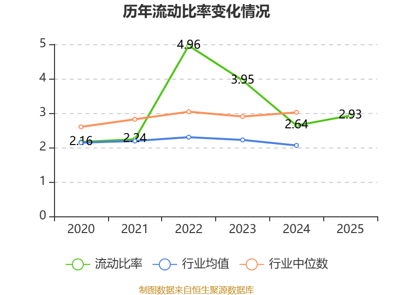 2025年,公司流动比率为2.93,速动比率为2.72。
