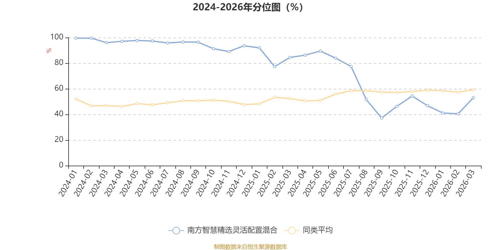 通过所选区间该基金净值增长率分位图,可以观察该基金与同类基金业绩比较情况。图为坐标原点到区间内某时点的净值增长率在同类基金中的分位数。