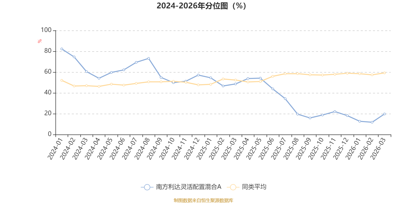 通过所选区间该基金净值增长率分位图,可以观察该基金与同类基金业绩比较情况。图为坐标原点到区间内某时点的净值增长率在同类基金中的分位数。