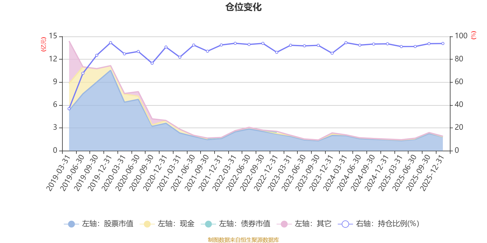 据定期报告数据统计,近三年平均股票仓位为92.12%,同类平均为72.57%。2019年末基金达到94.54%的最高仓位,2019年一季度末最低,为36.83%。